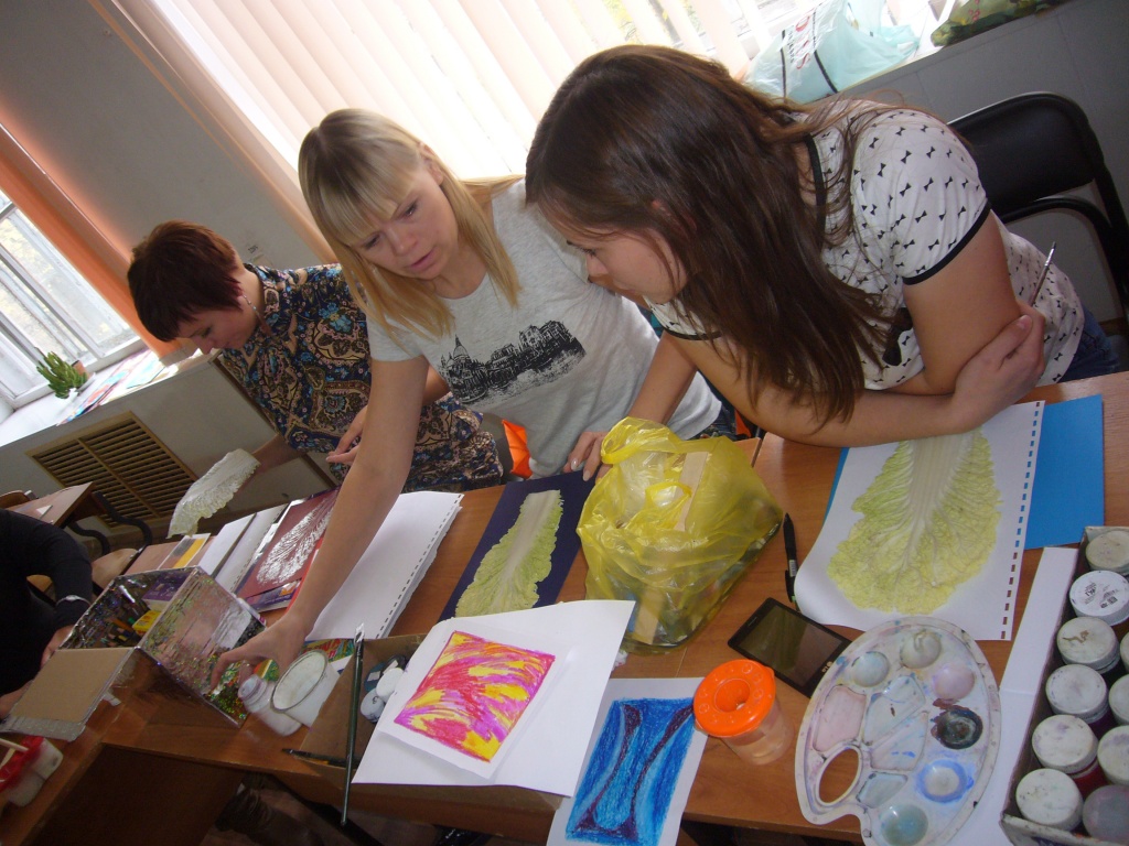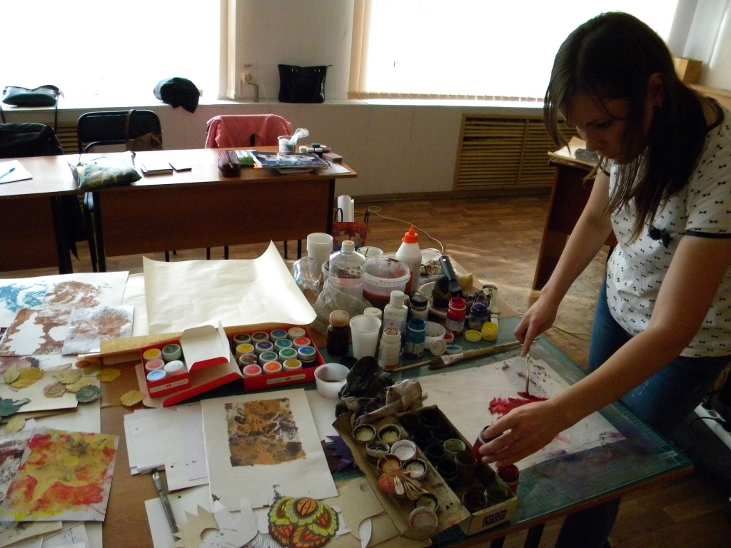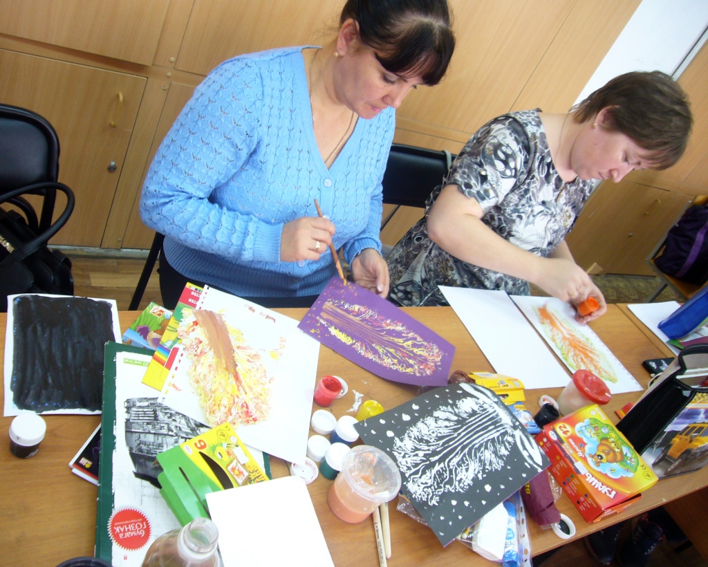 В начале октября факультет художественного образования совместно с ЦДПО НТГСПИ (ф) РГППУ провел для педагогических работников дошкольных образовательных организаций и педагогов дополнительного образования курс повышения квалификации по теме «Нетрадиционные техники рисования для детей дошкольного возраста в рамках ФГОС ДО». В течении трех дней слушатели познакомились с особенностями изобразительной деятельности дошкольника, освоили методы и приемы нетрадиционных техник рисования. На занятиях в практической деятельности слушатели выполнили творческие задания с использованием нетрадиционных техник рисования: монотипия на стекле, монотипия маслеными красками, рисование песком, рисование на мятой бумаге, рисование свечей и восковыми мелками и др.