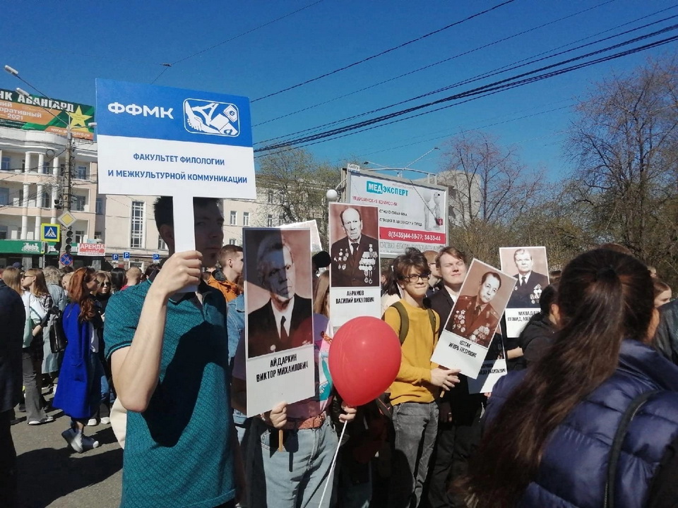 Студенты и сотрудники НТГСПИ отправились на театральную площадь, где присоединились к колонне города. «Бессмертный полк» объединил около 3,5 тысячи человек, а от обучающихся ВУЗа на демонстрацию вышло около 250 человек. Спустя два года ковидного перерыва патриотическая акция вернулась к традиционному формату.