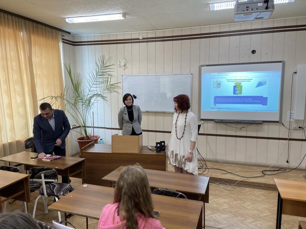 10 марта в рамках мероприятий, посвященных Году педагога и наставника, организуемых факультетом естествознания, математики и информатики, состоялась встреча студентов 3–5 курсов профилей «Математика и информатика», «Физика и информатика» и «Прикладная информатика в управлении IT-проектами» с представителями Управления образования администрации Нижнетуринского городского округа, к слову, выпускниками физико-математического и филологического факультетов нашего вуза: и. о. начальника Управления образования Екатериной Валентиновной Клочевой, заместителем начальника Управления образования Натальей Алексеевной Лапшиной и директором МАОУ НТГО «СОШ № 2» Евгением Анатольевичем Спеховым.