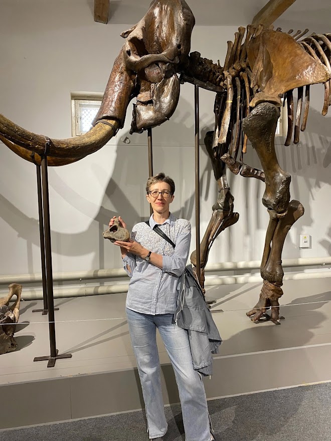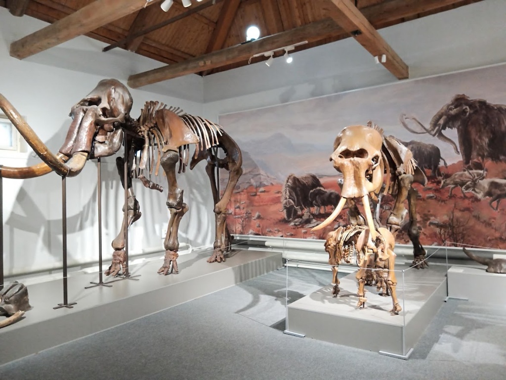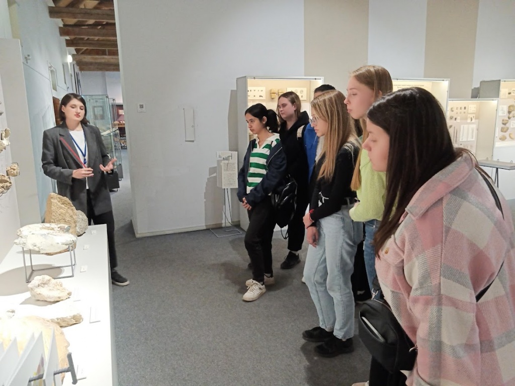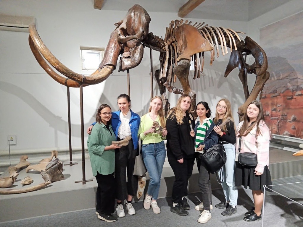Не менее познавательным было и посещение «Палеонтологического» зала, гордостью которого является «семейство мамонтов». Экскурсовод рассказала о том, какие палеонтологические находки представлены в экспозиции – фрагменты скелетов различных видов ледниковой фауны. И, конечно, студенты услышали историю появления в музее скелета мамонта. Первоначально взрослый мамонт был собран из фрагментов останков разных особей. Но после продолжительной реставрации музей получил целое семейство: скелеты крупного самца мамонта, самки и детеныша. Особенно поражают размеры взрослого мамонта и его бивни весом почти 100 кг.