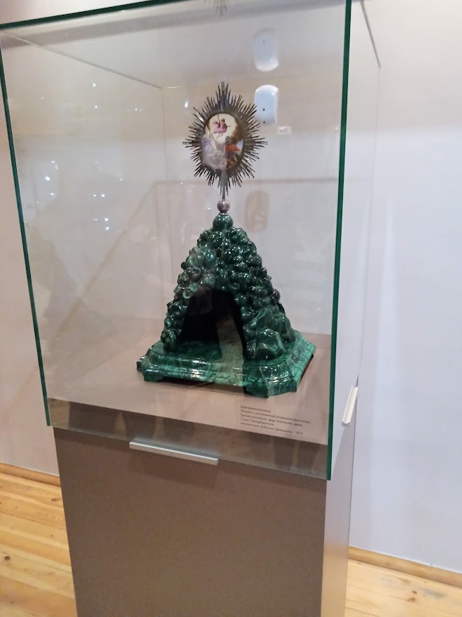 Студенты с интересом слушали экскурсовода, который подробно рассказал о разнообразных минералах Урала. Постоянно действующая выставка содержит не только образцы минералов, но и интересные камнерезные изделия. Особый «Малахитовый» зал посвящен данному минералу, крупнейшее месторождение которого было обнаружено в окрестностях нашего города. Участники экскурсии узнали, когда впервые изделия из «русского камня» получили мировую известность; что означает термин «русская мозаика»; как была обнаружена глыба малахита в 40 тонн и много других интересных фактов.