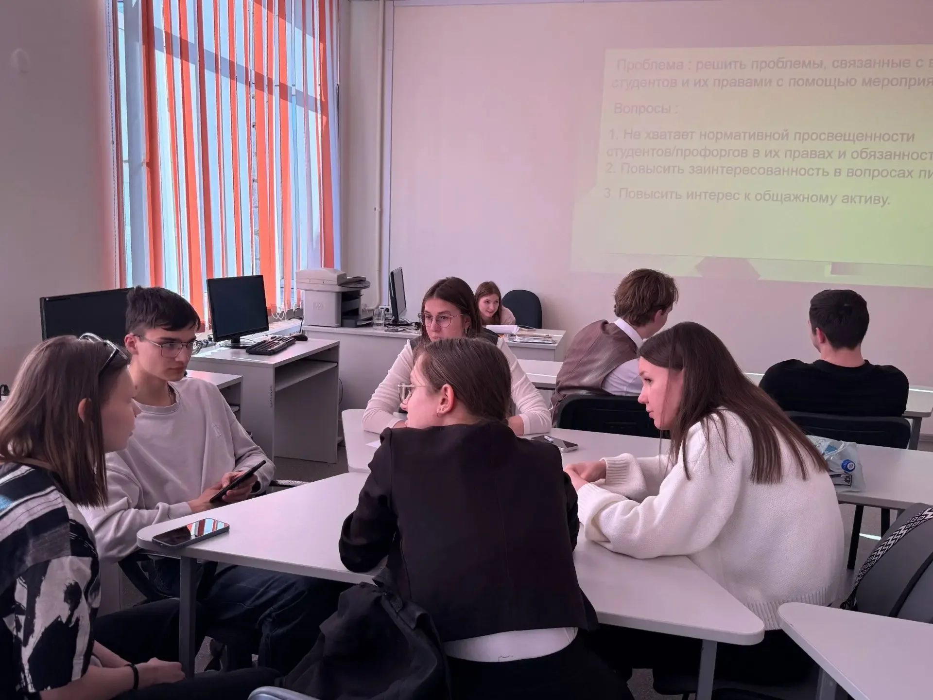 Каждой команде было дано 40 минут на решение кейсового задания, требовалось разработать и представить идею. Ребята думали над новым форматом для проведения дней открытых дверей, предлагали тематику круглых столов, интеллектуальных и спортивных мероприятий, разрабатывали мероприятие от профкома с целью увеличить нормативную просвещенность студентов. Кроме того, предлагалось создать новую рубрику для увеличения аудитории наших социальных сетей.