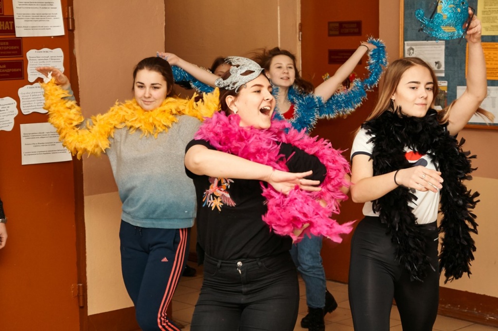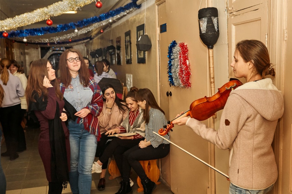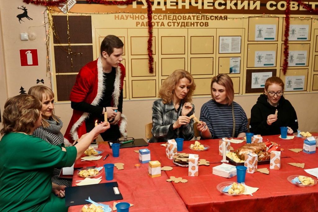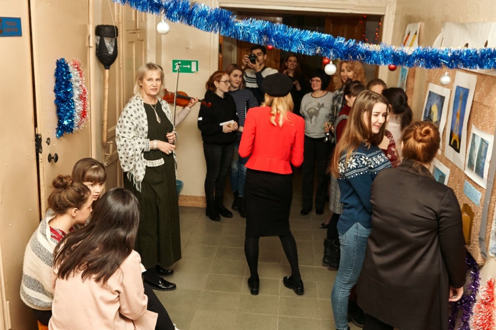 В этот вечер прозвучало множество добрых пожеланий и шуток, были исполнены прекрасные творческие номера. Кроме того, были подведены итоги конкурса «Новогодний серпантин», в ходе которого стены каждого факультета превратились в новогоднюю историю в выбранной стране.