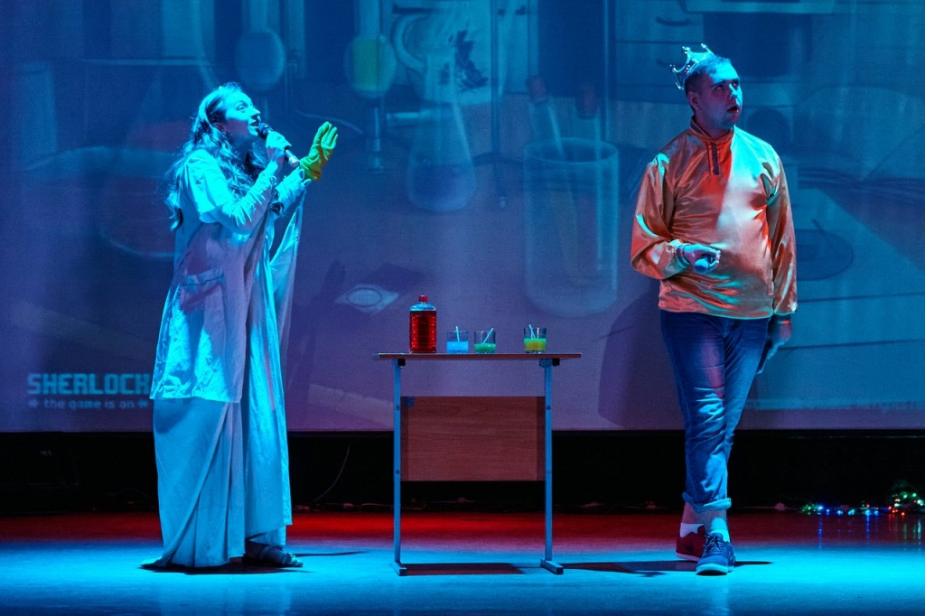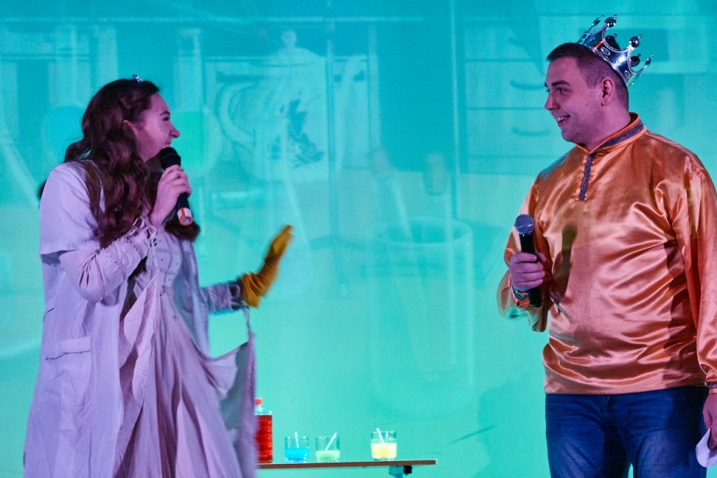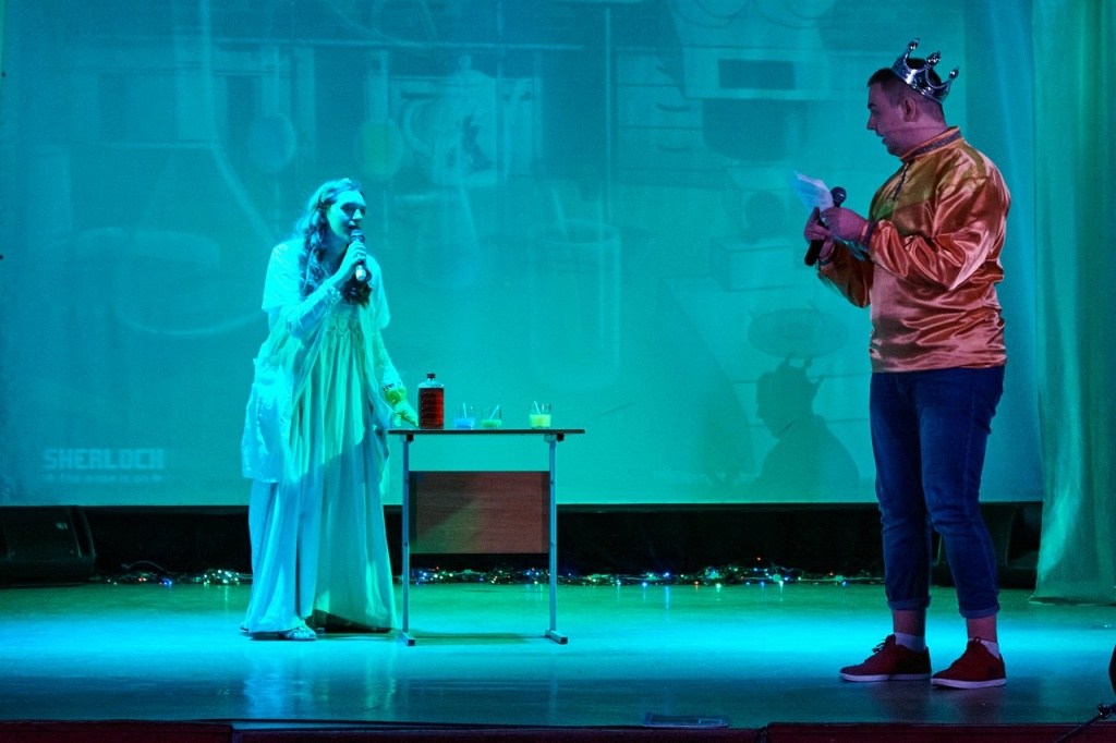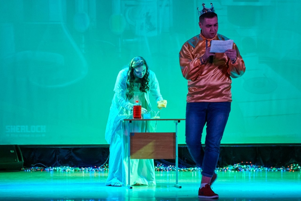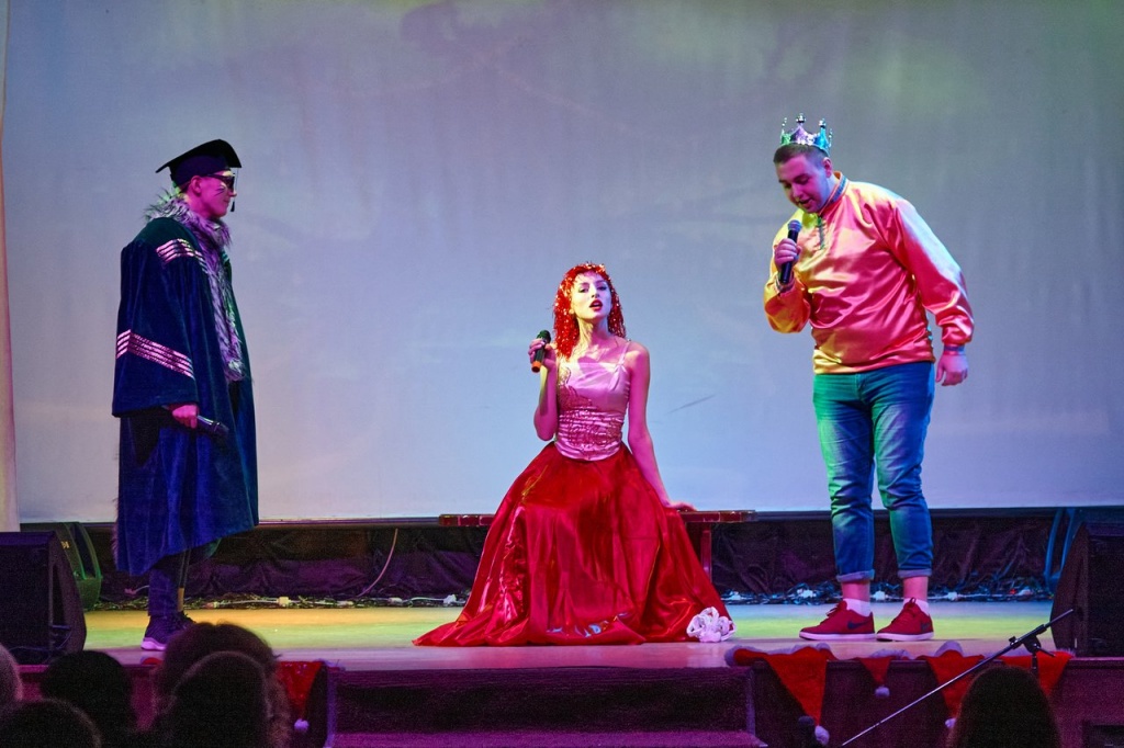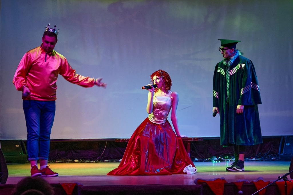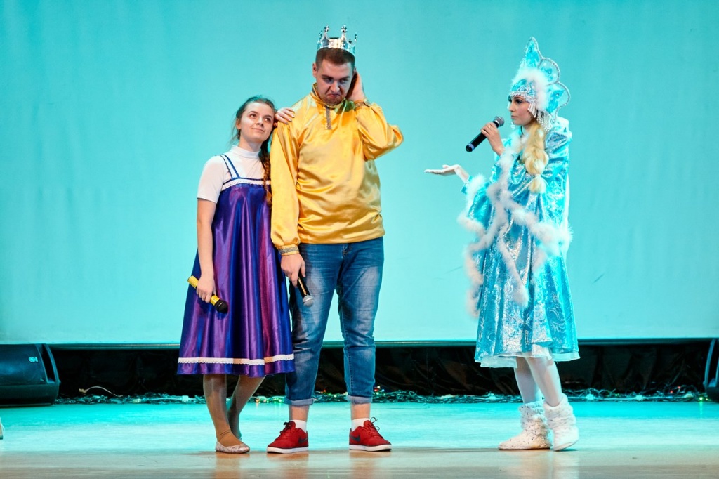 В завершение года на сцене НТГСПИ произошло чудесное путешествие царского сына, звали его, конечно, Иван. Не хочет Иван учиться, хочет жениться. Царь противиться желанию сына не стал и дал ему родительский наказ: «Не успеешь до двенадцатого удара новогодних курантов найти себе невесту – продолжишь учебу».
