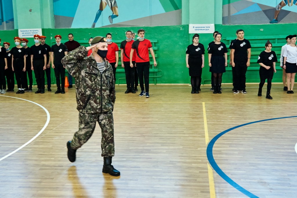 На первом этапе проверялось умение участников выстроиться в одну шеренгу, выполнить команды «Равняйсь!», «Смирно!», сделать рапорт, рассчитаться по порядку, на первый – второй, выполнить поворот на месте, пройти строевым шагом с песней, выполнить команды «На месте стой!», «Разойдись!», а также оценивались название команды, эмблема, девиз, приветствие соперникам (в соответствии с военной тематикой).