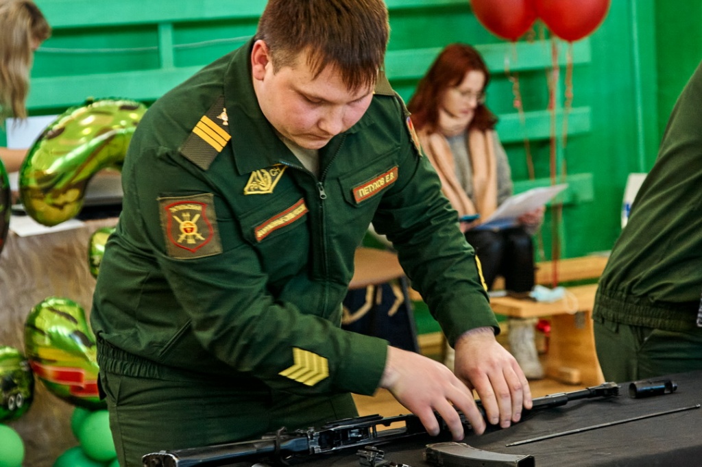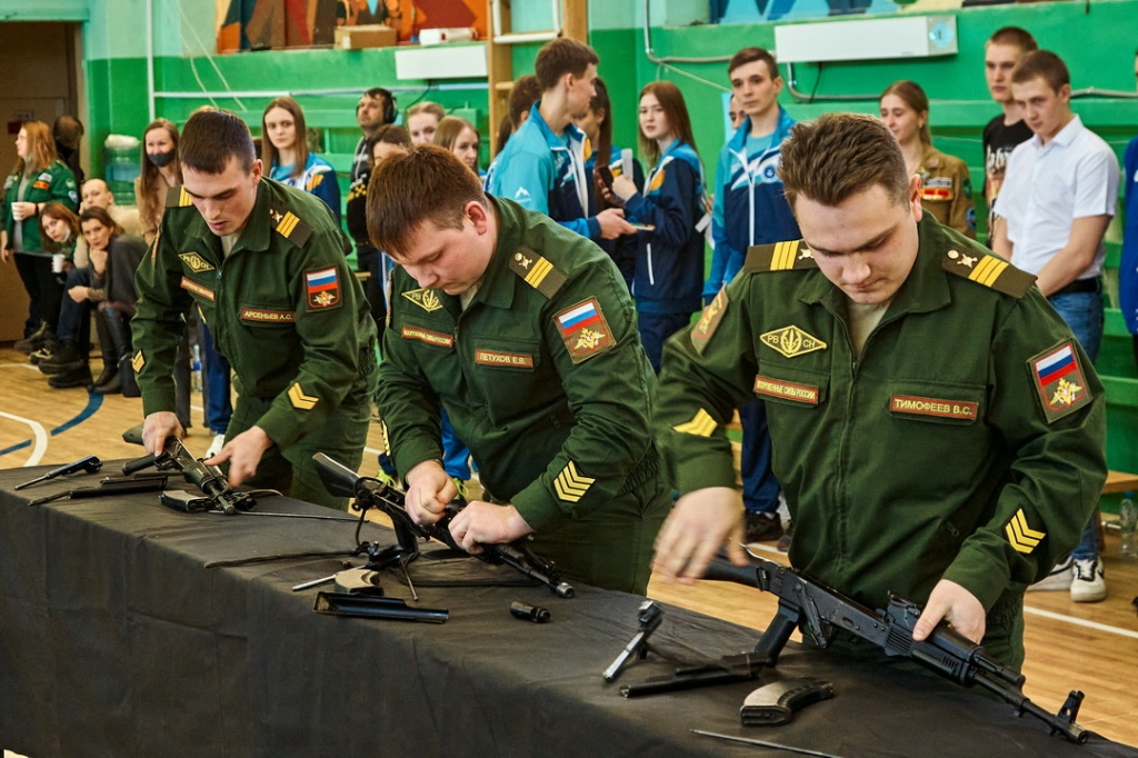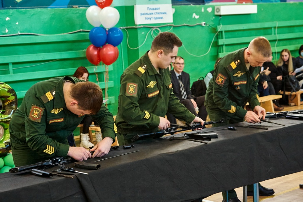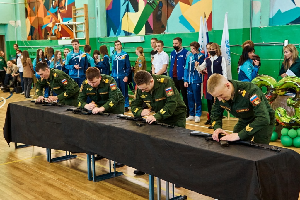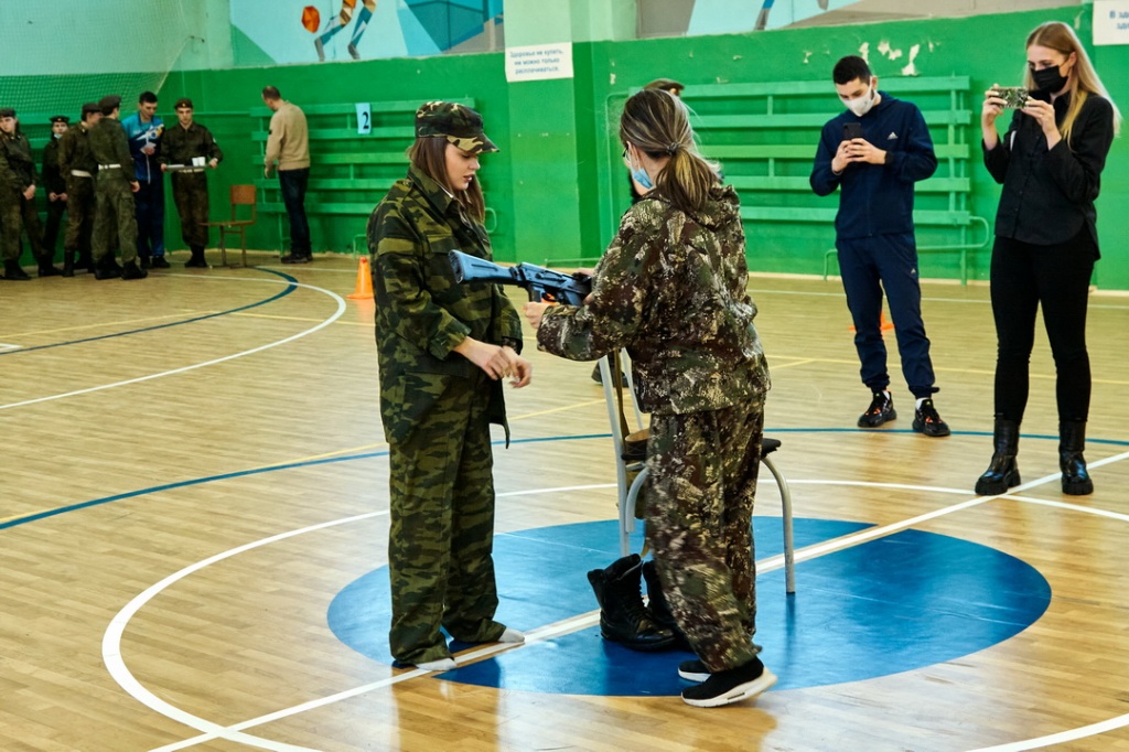Соревнования «Армейские будни» состояли из четырех этапов: строевая подготовка с песней, сборка-разборка автомата Калашникова, конкурс командиров и «марш-бросок».