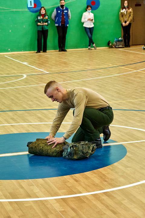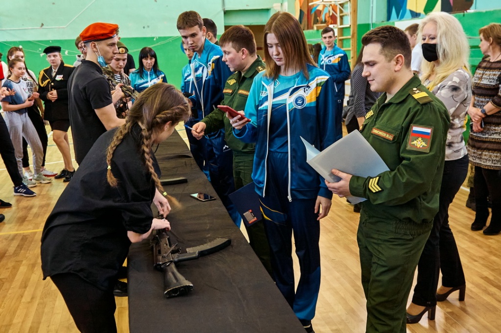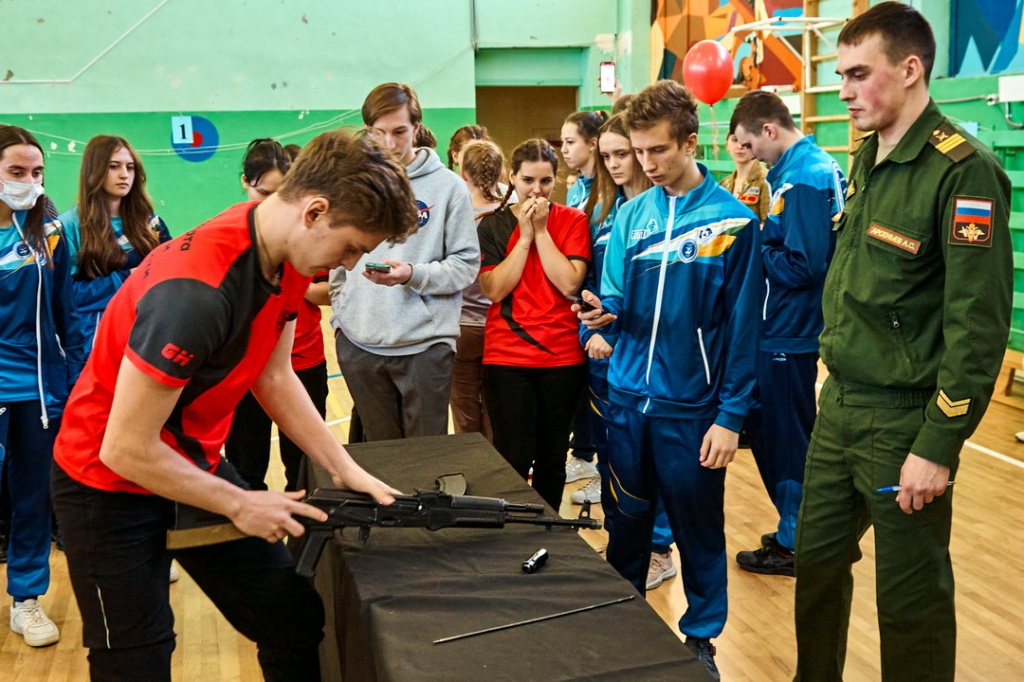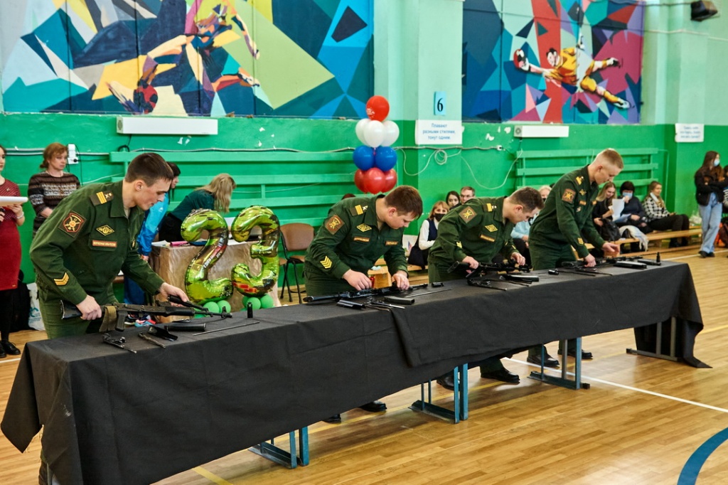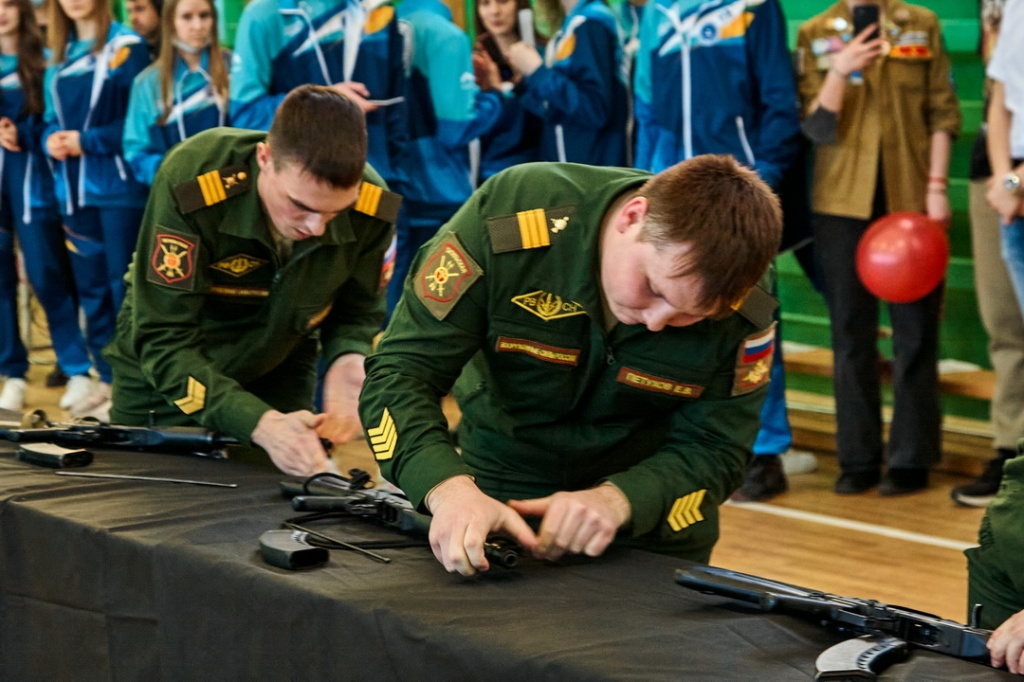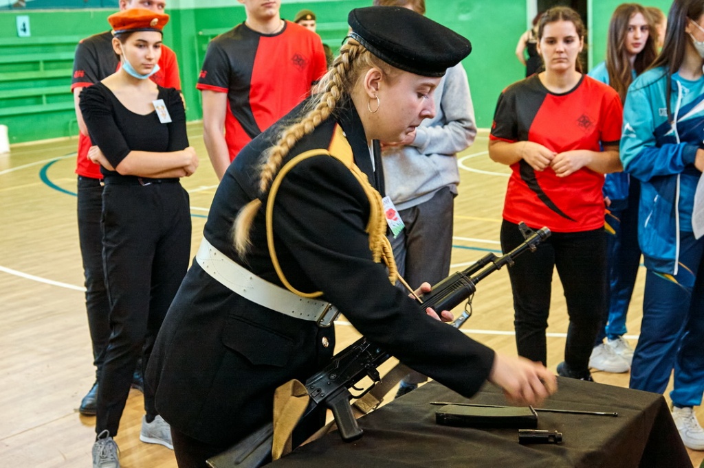 Соревнования «Армейские будни» состояли из четырех этапов: строевая подготовка с песней, сборка-разборка автомата Калашникова, конкурс командиров и «марш-бросок».