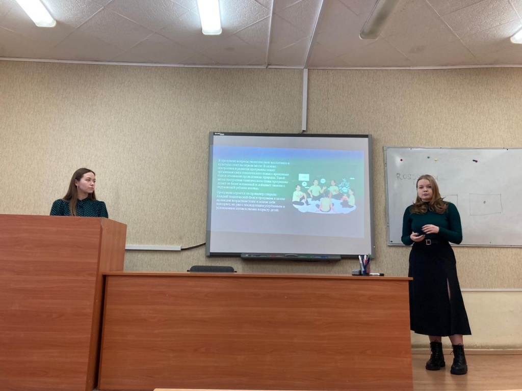 Одну из образовательных программ для детей дошкольного возраста «Семицветик» представили студентки Елизавета Лунева и Екатерина Комарова (ФППО, рук. М. В. Ломаева). Программа направлена на воспитание у детей чувства прекрасного, любви к природе, уважения к людям, т. е. личностных качеств, ценимых во все времена.