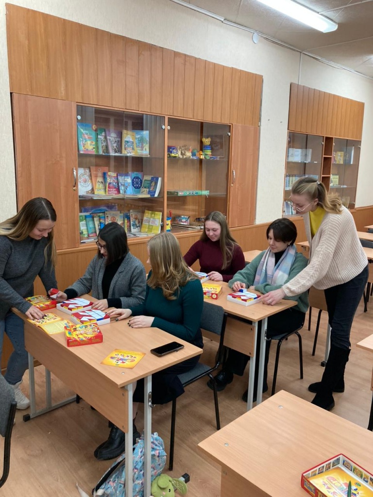 Таким образом, сессия плавно подошла к рассмотрению проблем дошкольного воспитания. Небольшой фрагмент занятия в детском саду показали студенты ФППО Анна Михалева и Анастасия Чанчикова (рук. М. В. Ломаева). Они взяли на себя роль воспитателя, а всем присутствующим предложили на время стать пятилетними малышами. Участники сессии несколько минут увлеченно играли в развивающую игру «Сложи узор» В. В. Воскобовича.