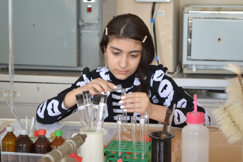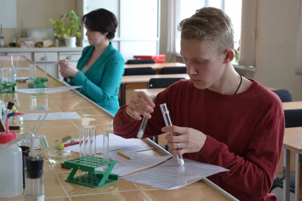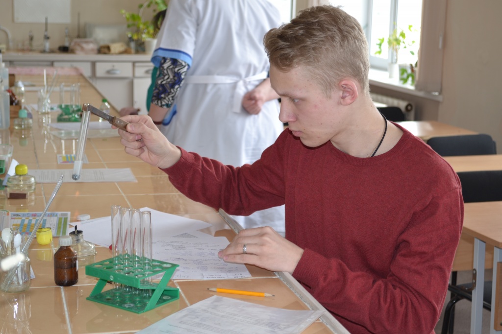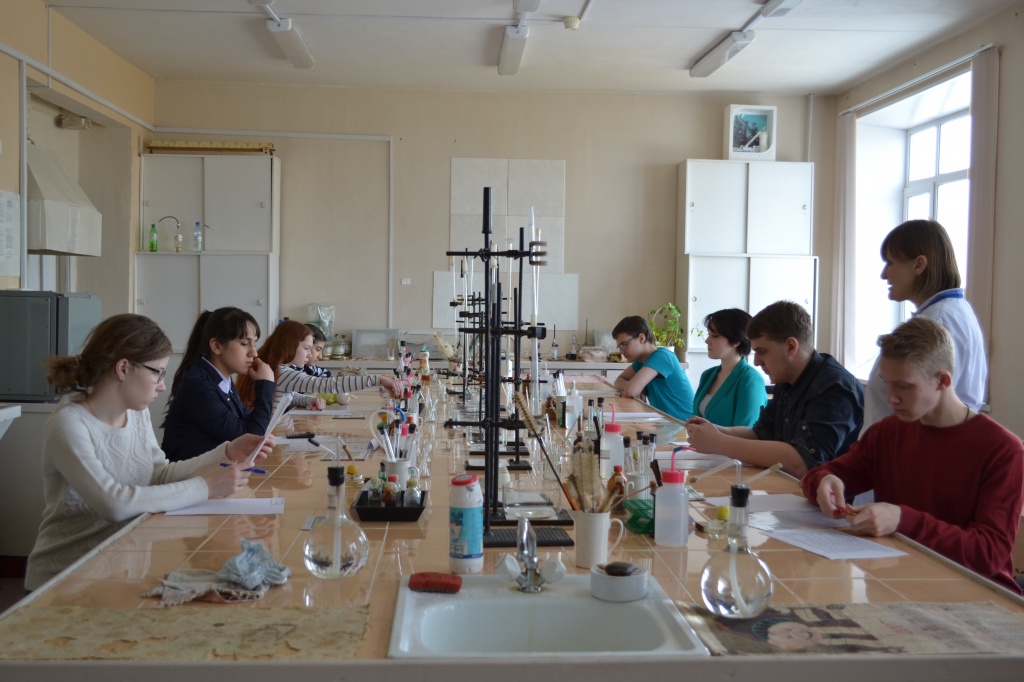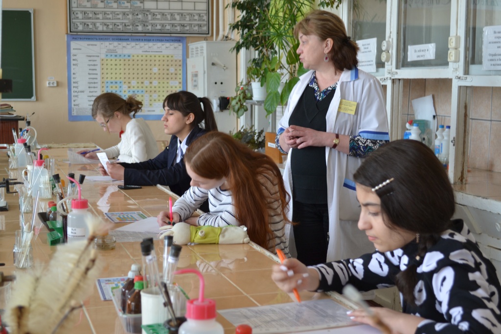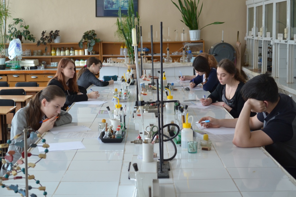 В рамках олимпиады по химии школьникам были предложены два тура – теоретический и практический. На первом этапе проверялись теоретические знания по неорганической и органической химии для учащихся 9–11 классов соответственно. От участников требовалось написать уравнения реакций, указать признаки проводимых химических реакций и дать названия продуктов реакций. Для прохождения на 2 этап учащимся необходимо было набрать 50 % от возможных максимальных баллов.