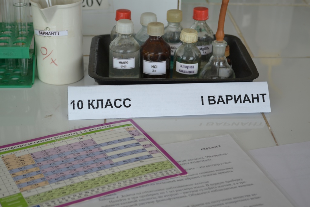 Для выполнения экспериментального тура каждому участнику предоставлялось лабораторное оборудованное и укомплектованное рабочее место. Участники получили необходимые реактивы и оборудование согласно заданиям экспериментального этапа. Перед началом экспериментального тура учащихся кратко проинструктировали о правилах техники безопасности и о выполнении тех или иных процедур, с которыми они столкнутся при выполнении задания.