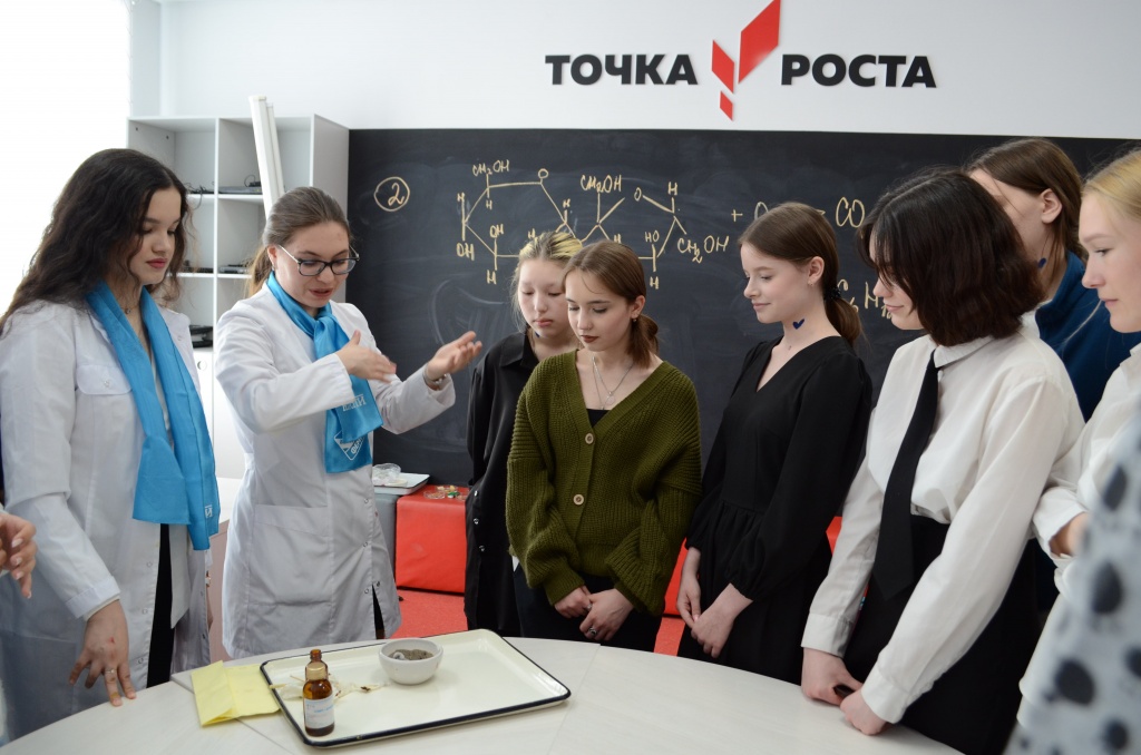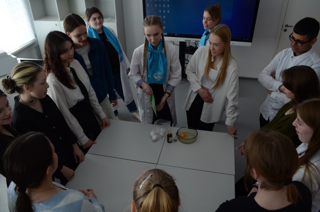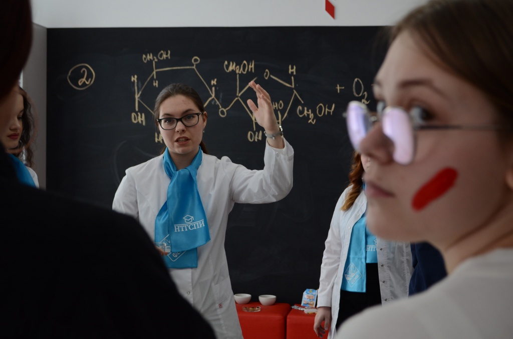 Студенты провели квест для школьников «В мире естественных наук» по четырем станциям – направлениям естественнонаучных профилей, по которым идет подготовка на факультете естествознания, математики и информатики: биология, физика, экология и химия. В ходе программы четыре сборные команды школьников в течение 15 минут получали максимальное количество информации по предметам в игровой форме, после менялись, пока каждая группа не прошла все станции. Конкуренция за первое место самых активных и эрудированных продолжалась и во время квиза в актовом зале школы.