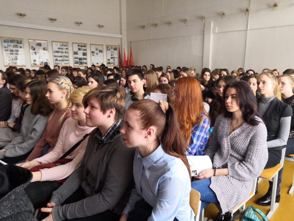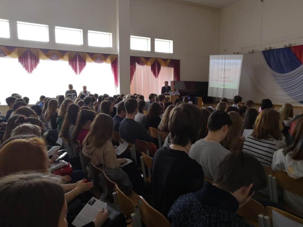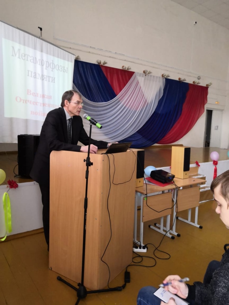 21 марта состоялась седьмая по счету публичная лекция на тему «Метаморфозы памяти о второй мировой войне». На этот раз она прошла в актовом зале МАОУ СОШ № 5 с углубленным изучением отдельных предметов, который одновременно вместил 140 учащихся из пяти школ (№ 5, № 49, № 66, № 144, № 56), расположенных на Тагилстрое.