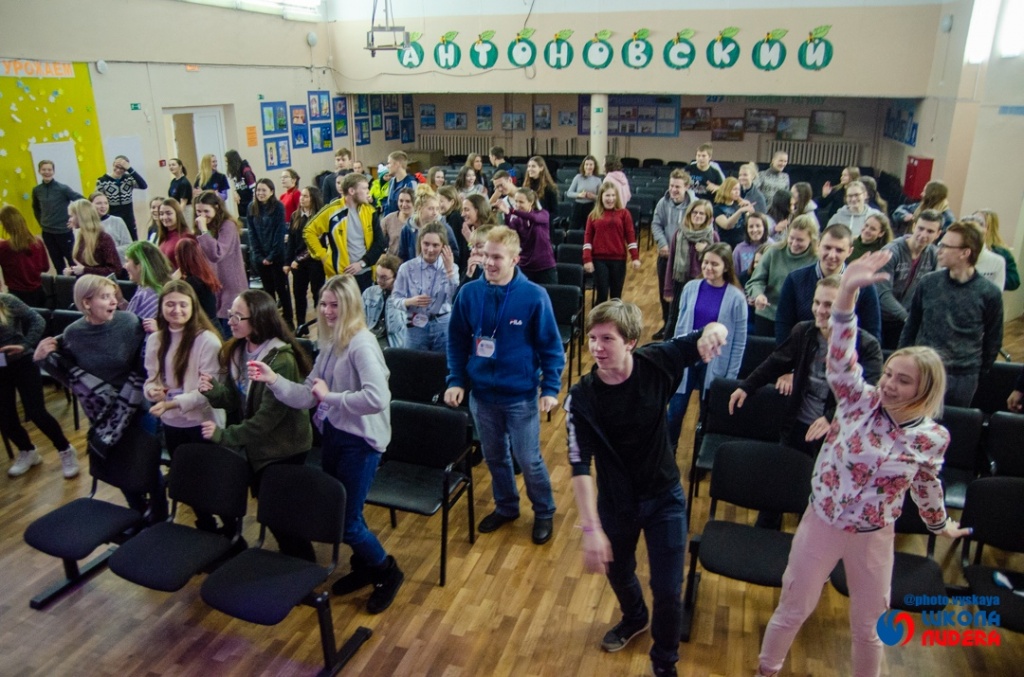 После бодрящих флешмобов в актовом зале ДОЛ «Антоновский» состоялось организационное собрание, на котором всех участников ждал сюрприз от Медиацентра ШЛ – забавный видеоотчет по предыдущему дню.