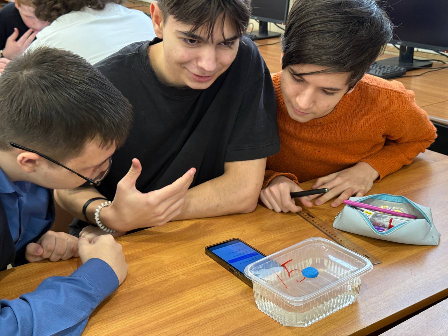 Первый этап включал теоретический тур, в ходе которого участники продемонстрировали свои знания. Решая практическое задание второго этапа, команды вычисляли массу, объем и плотность образца пластилина. Оценку решений проводили преподаватели кафедры ИТФМО.