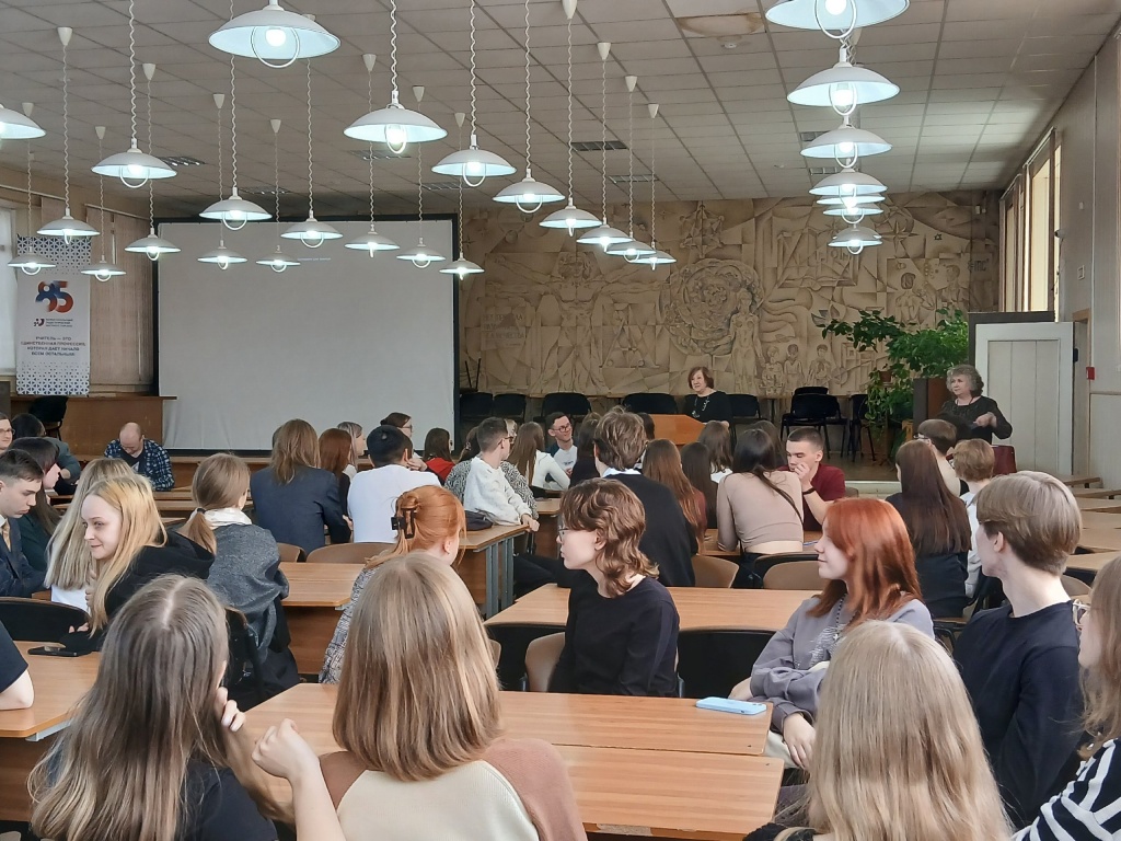 На встрече с участниками мероприятия декан СГФ А. М. Олешкова рассказала о факультете, его традициях и особенностях обучения. В качестве интеллектуальной разминки ребята приняли участие в квизе «Гуманитарный движ», который провела А. С. Аникина, зам. декана по профориентационной работе.