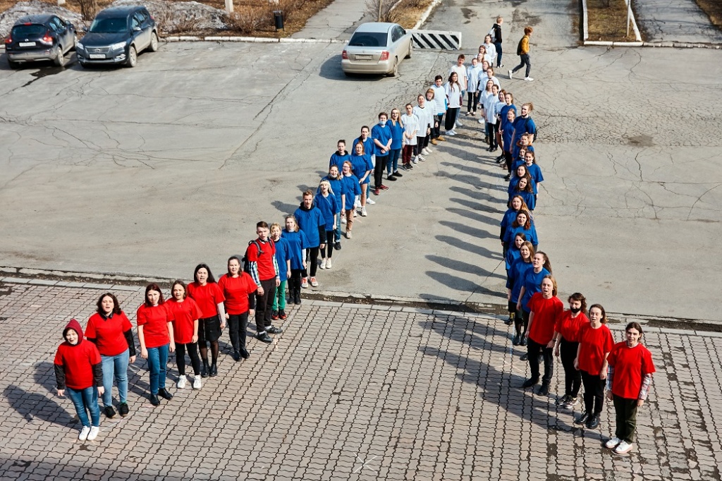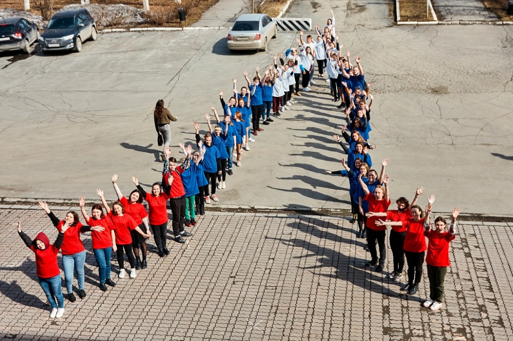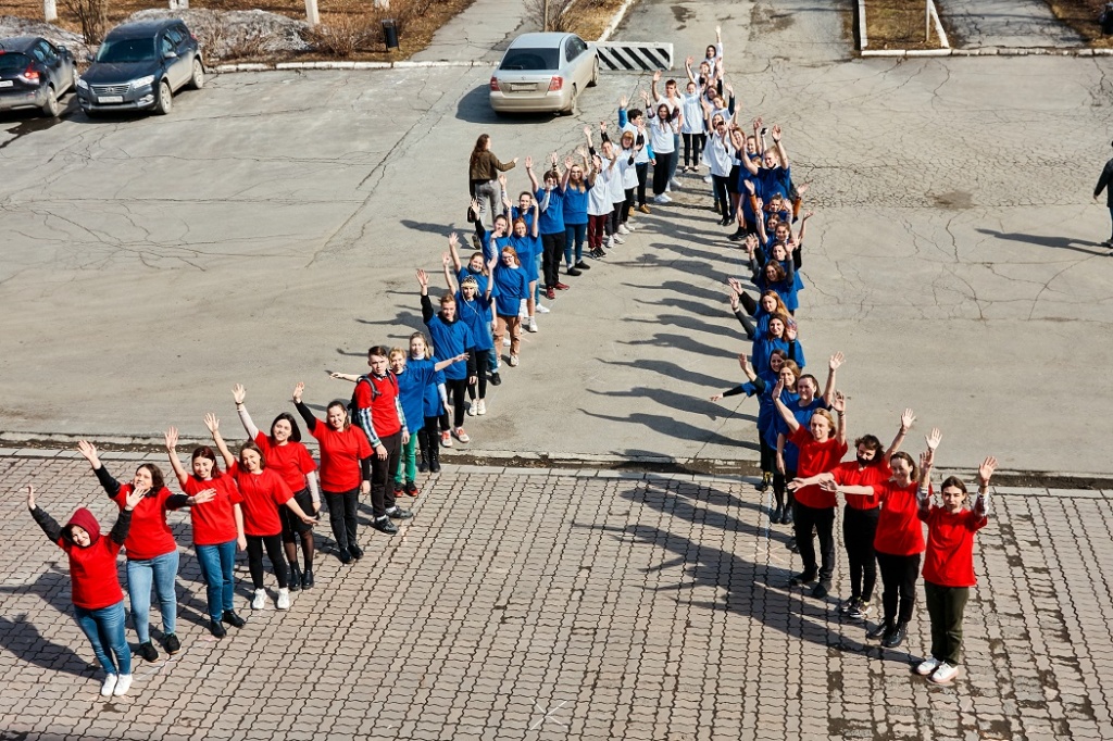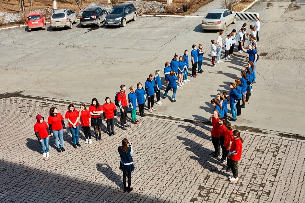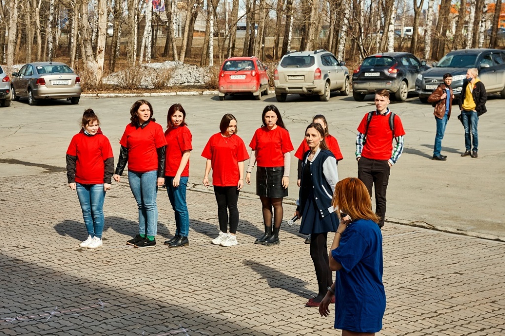 В первой акции нужно было «построить ракету» из активистов факультетов вуза. Цвета были символичные: красный (основание ракеты), синий (корпус ракеты) и белый (острие ракеты). Студенты кричали: «НТГСПИ! Полет нормальный», а затем: «Поехали!».