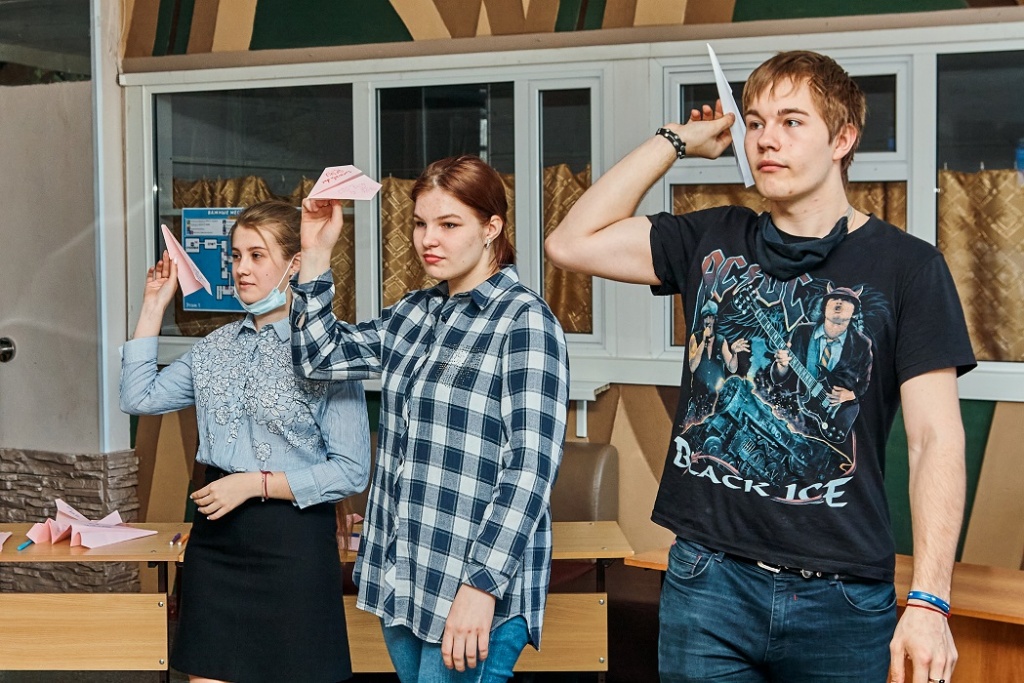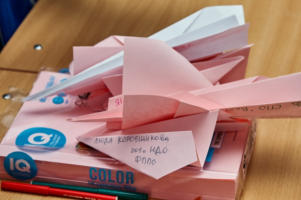 Затем студенты смогли запустить самолетики в «космос» в холле института. Желающих поучаствовать в этом немного детском, но веселом мероприятии, было много.