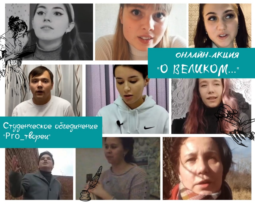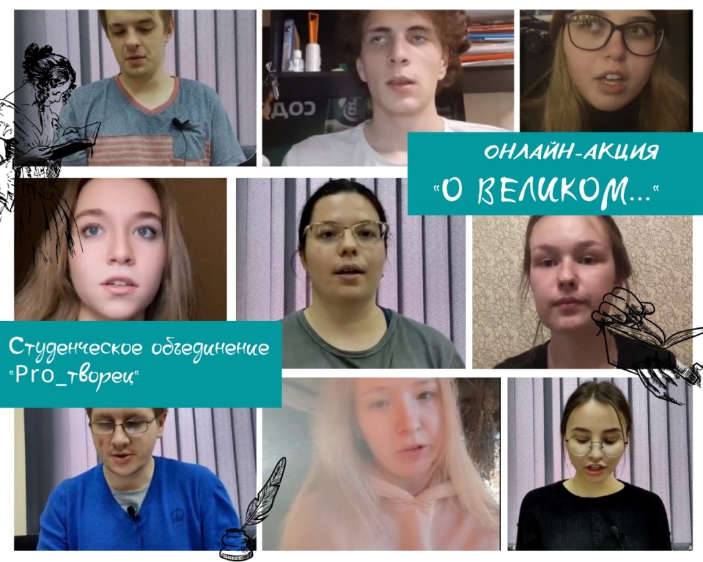 В рамках акции «О великом...», проводимой студенческим объединением «Pro_творец», участникам предстояло отправить небольшие видеоролики с выразительным чтением любимого произведения поэта. Акция проходила на платформе группы Вконтакте Объединенного Совета обучающихся. Именно там и были выложены видеоролики, которые отправляли студенты. Акция была запущена в день рождения Михаила Юрьевича, 15 октября. Открыл ее зам. декана ФХО по ВР НТГСПИ Алексей Владимирович Миронов стихотворением «Я жить хочу, хочу печали».