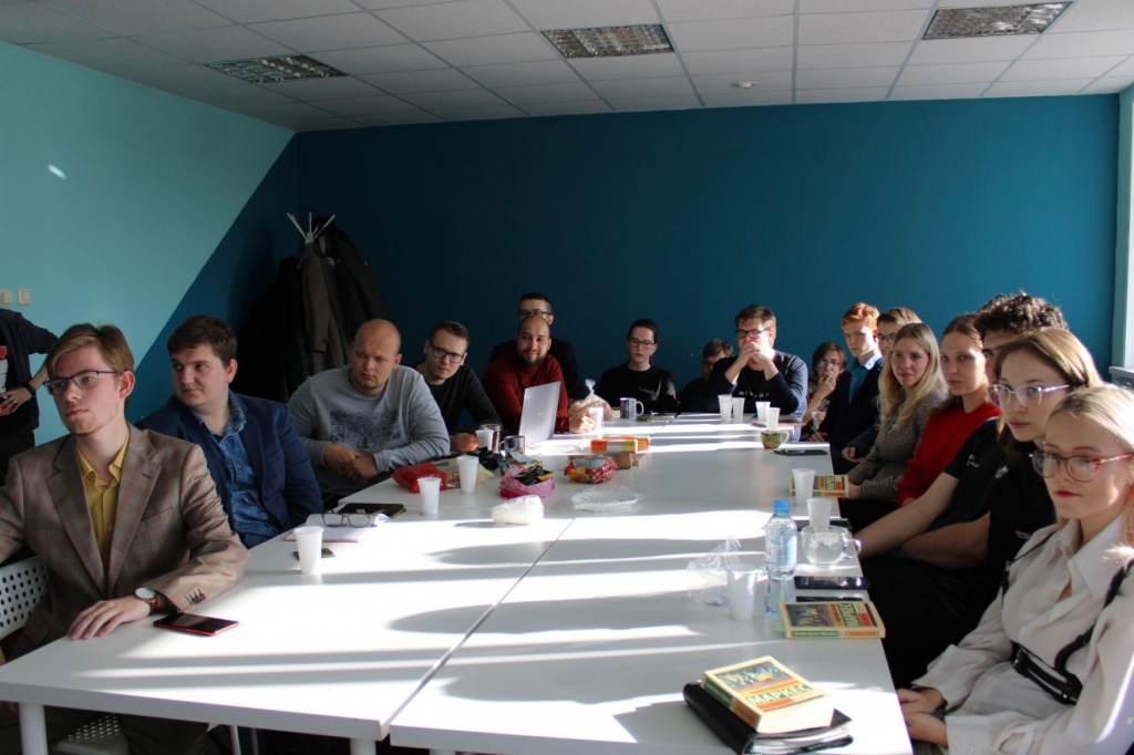 Модератор литературного клуба – А. М. Олешкова. В обсуждении книги приняли участие студенты 1–5 курсов нескольких факультетов: СГФ, ФФМК, ФЕМИ.