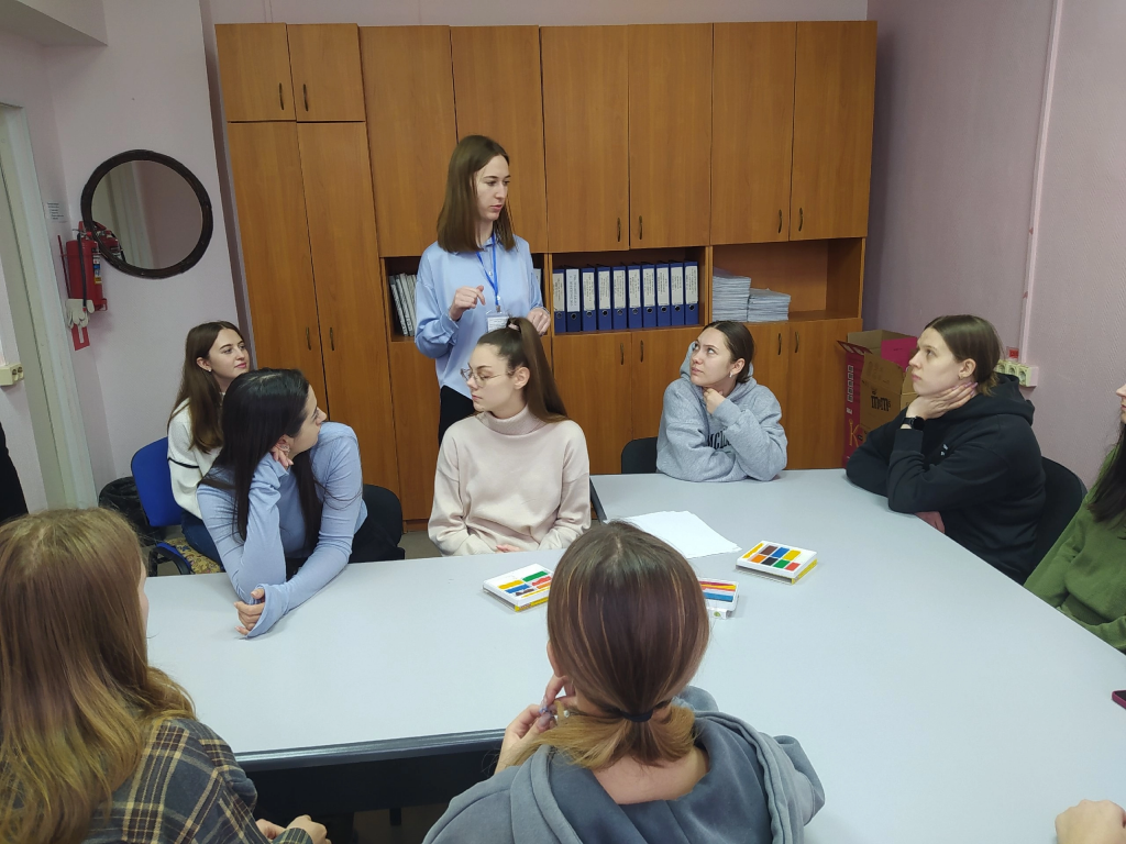 Студенты 4 курса, обучающиеся по направлению «Психологическое консультирование и медиация в социальной сфере» посетили отделение профилактики безнадзорности несовершеннолетних ГАУСО СО «КЦСОН Ленинского района города Нижний Тагил». Для формирования практических компетенций по курсам «Работа с семьей в медиации» (преподаватель Н. А. Тарасова) и «Антистрессовые методы в медиации» (преподаватель Т. Ю. Основина) студенты С. Гоголева и Р. Козиков-Зинченко, работающие психологами в этом отделении, провели мероприятие для одногруппников с целью демонстрации профессиональных компетенций.