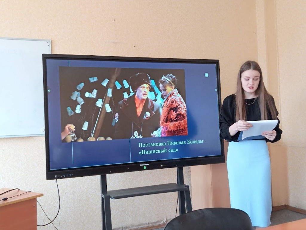 Виолетта Завьялова в своей работе обратилась к вопросу интерпретации драматического произведения средствами театрального искусства. В качестве материала для исследования были выбраны современные интерпретации «Вишневого сада» А. П. Чехова разных режиссеров – Николая Коляды и Линаса Зайкаускаса.