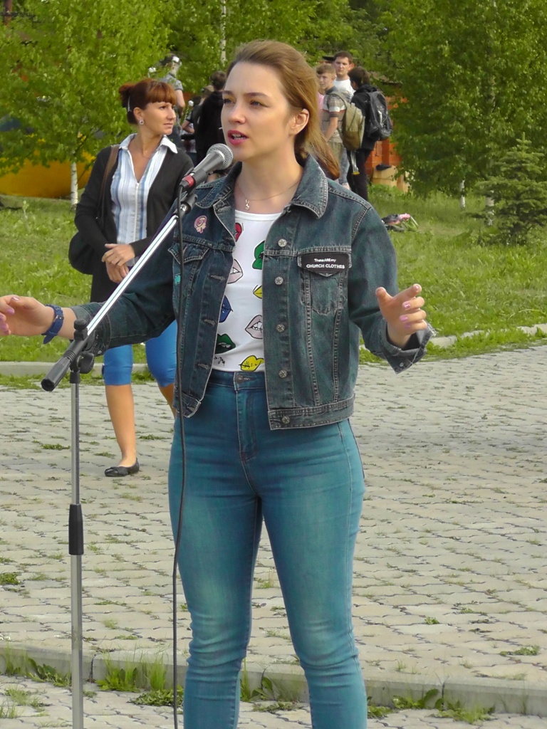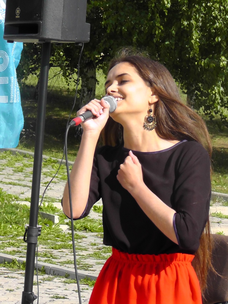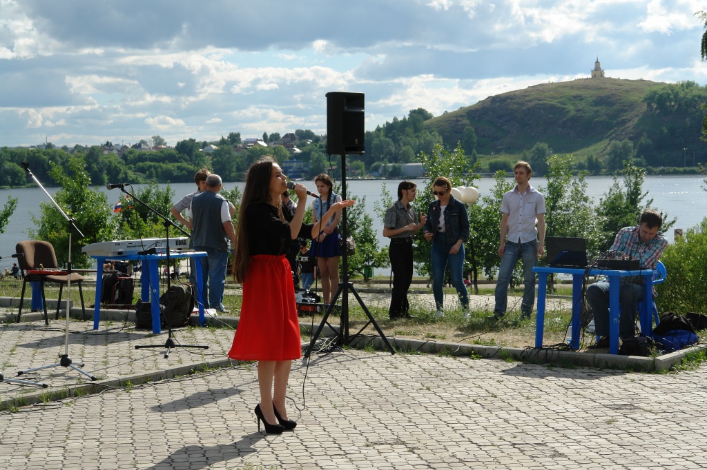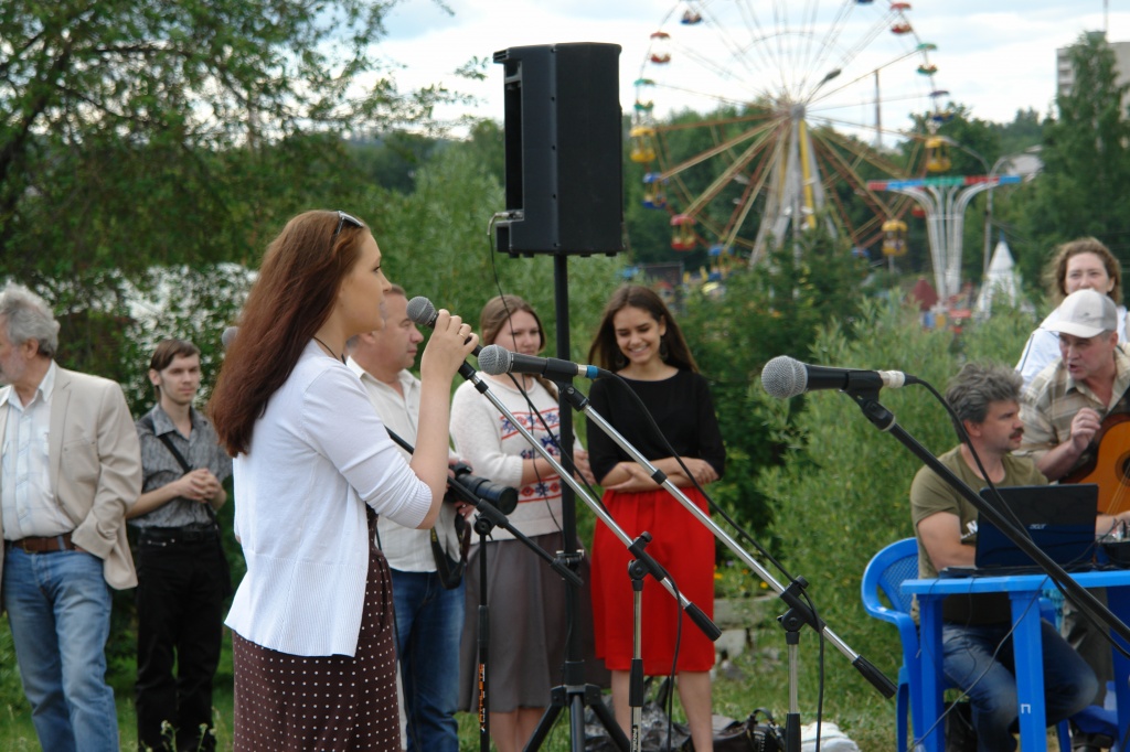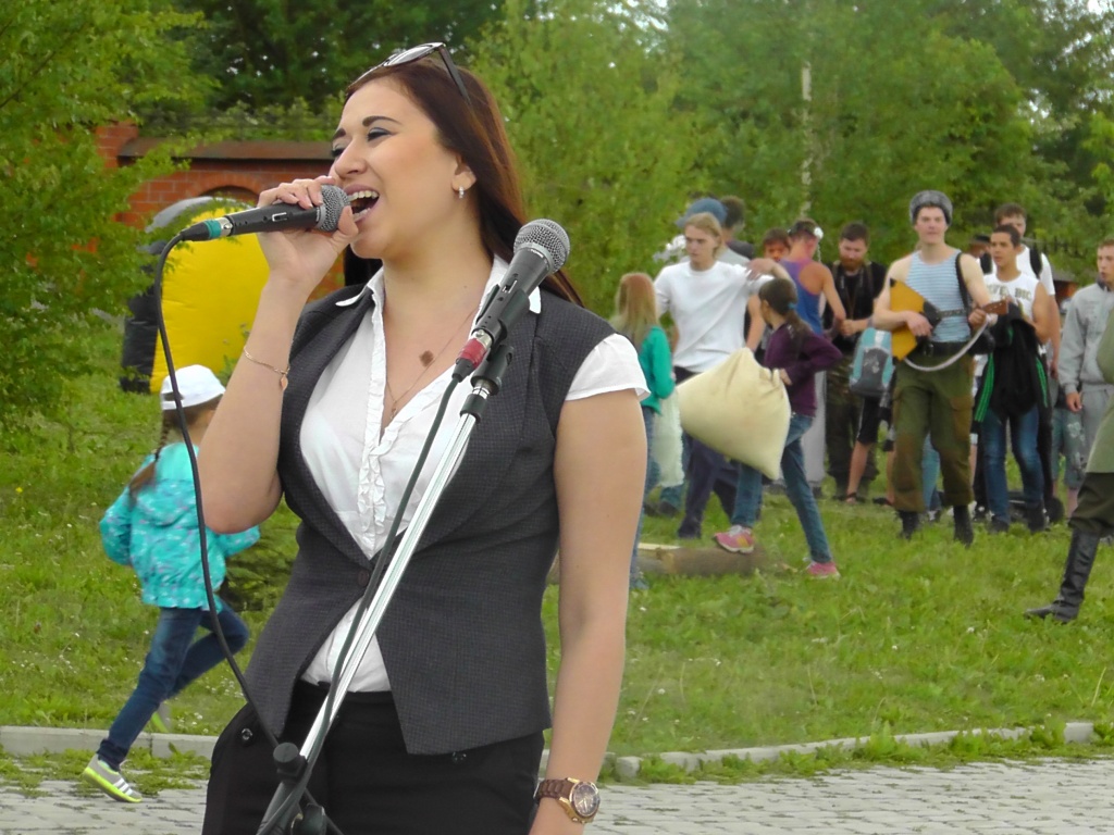 Это был «Тагильский Арбат», обосновавшийся в парке им. А.П.Бондина невдалеке от фонтанного каскада. Наши студенты и преподаватели устроили фактически двухчасовой творческий марафон, свидетелем которого мог стать каждый, пришедший на городской праздник. Студенты профилей «Сценические искусства», «Музыкально-театральное искусство» и «Театральное искусство» представили замечательную вокальную программу (Анна Яковлева, Мария Юшина, Юлия Бастракова, Александра Корюкова), а также чтецкие номера (Дарья Макарова, Екатерина Семенова, Мария Юшина).