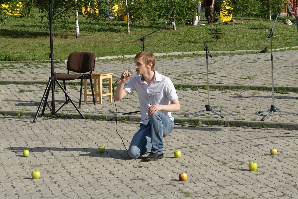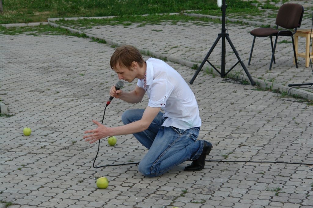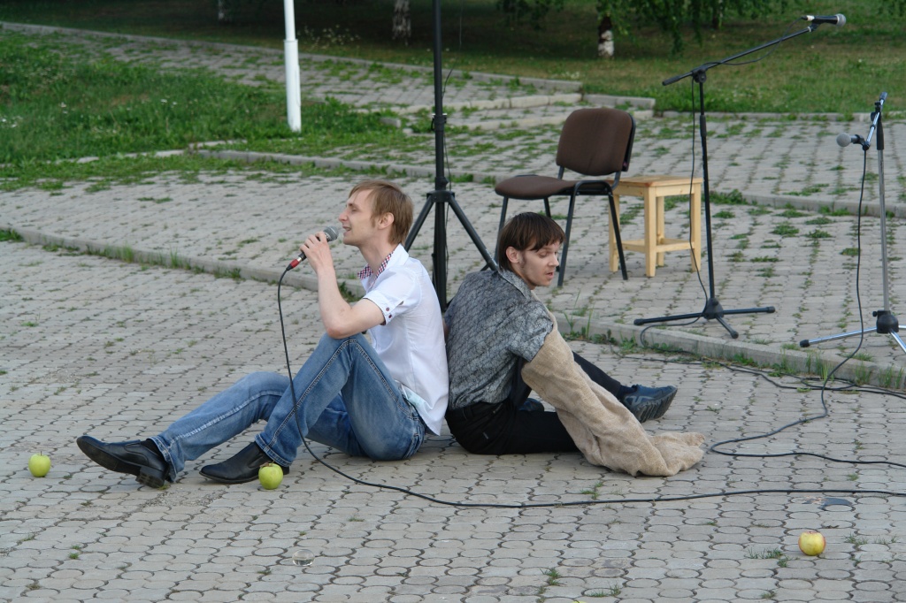 Выпускники профиля «Музыкально-театральное искусство» Игорь Незнахин и Сергей Сычев исполнили музыкально-поэтическую композицию по стихотворениям Арсения Тарковского «А все-таки жизнь хороша…» Ребятам удалось «переформатировать» композицию, предназначенную для концертного зала и сцены, под условия открытой площадки… Вселенная поэта, составленная из планет-яблок, перешла в руки благодарных зрителей.
