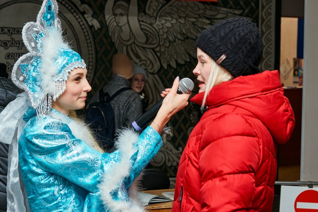 В институте царила сказочная атмосфера. Празднично украшенный холл и новогодняя музыка прибавляли хорошего настроения. Собравшиеся на открытии праздничной недели студенты, преподаватели и администрация вуза в полной мере ощутили, что впереди всех ожидает сказочная и волшебная неделя, полная невероятных впечатлений.