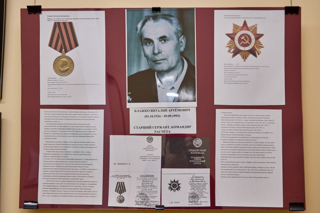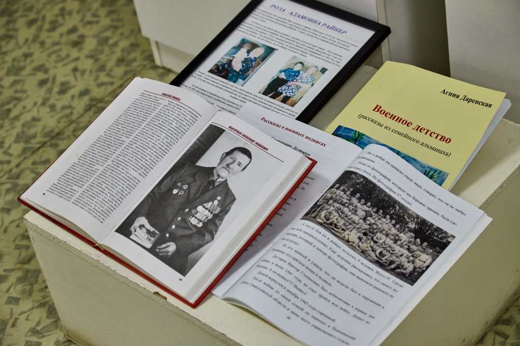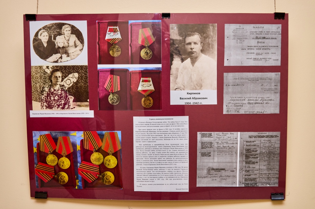 Фотовыставка, посвященная героизму во время Великой Отечественной войны, расположилась на первом этаже социально-гуманитарного факультета. Семейные архивы явились основным источником материалов, представленных здесь. В то же время, многие студенты совместно со своими родителями проводили поисковую работу, изучая рассекреченные базы данных разных ведомственных архивов нашей страны. В этом разделе представлены и личные истории, воспоминания студентов о своих прабабушках и прадедушках – героях Великой Отечественной войны.