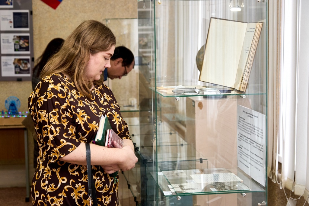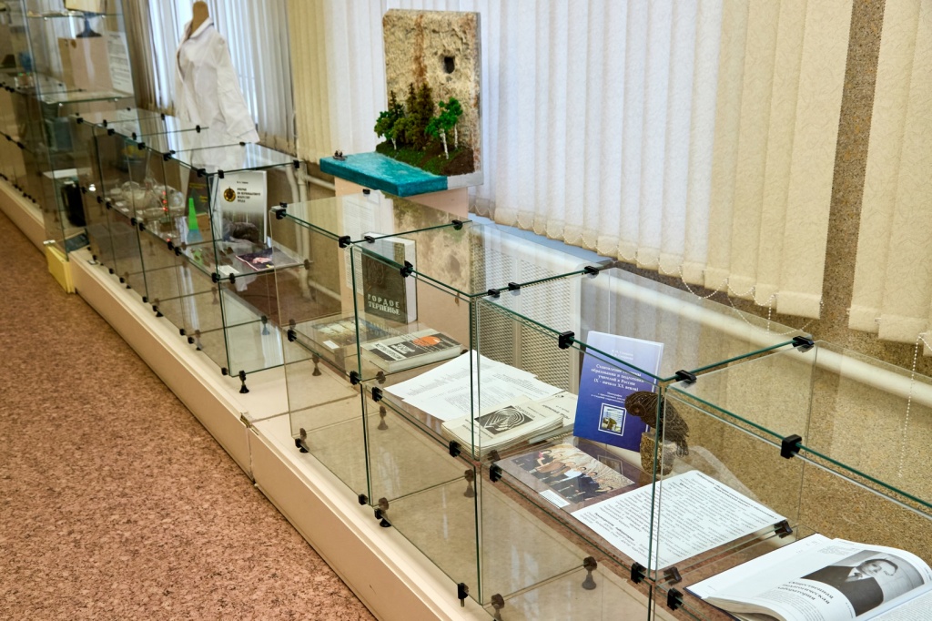 Обзорная экскурсия по выставке для членов Ученого Совета была проведена заведующей музеем Еленой Александровной Казаковой. Представленные на выставке экспонаты содержательно разделены на пять комплексов: