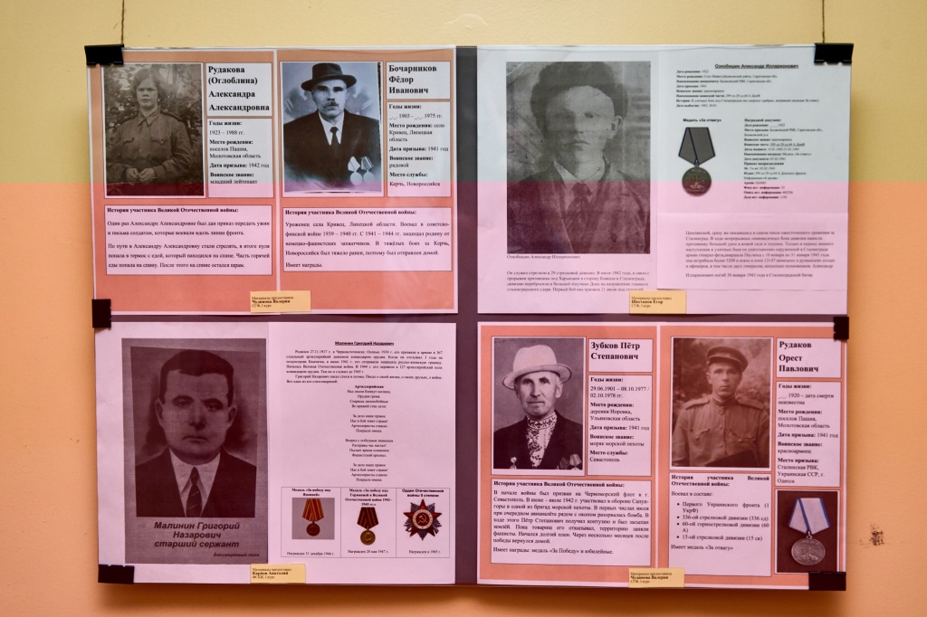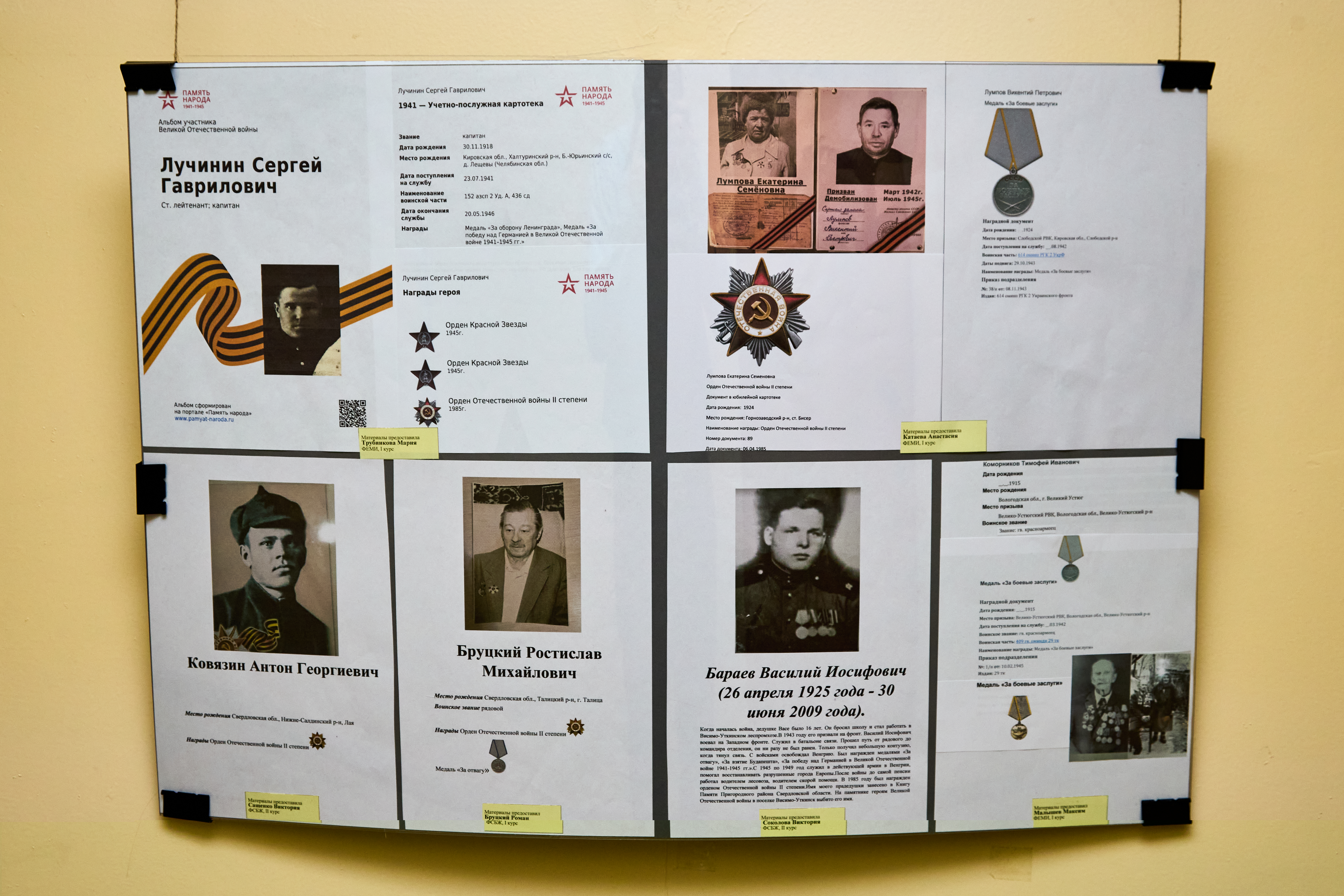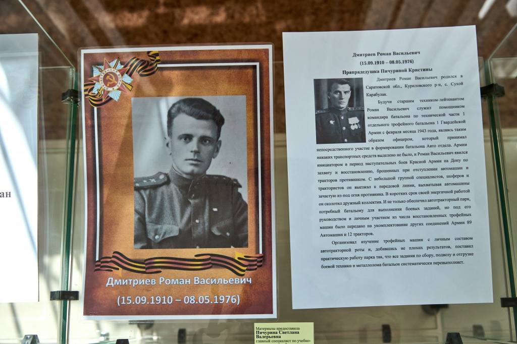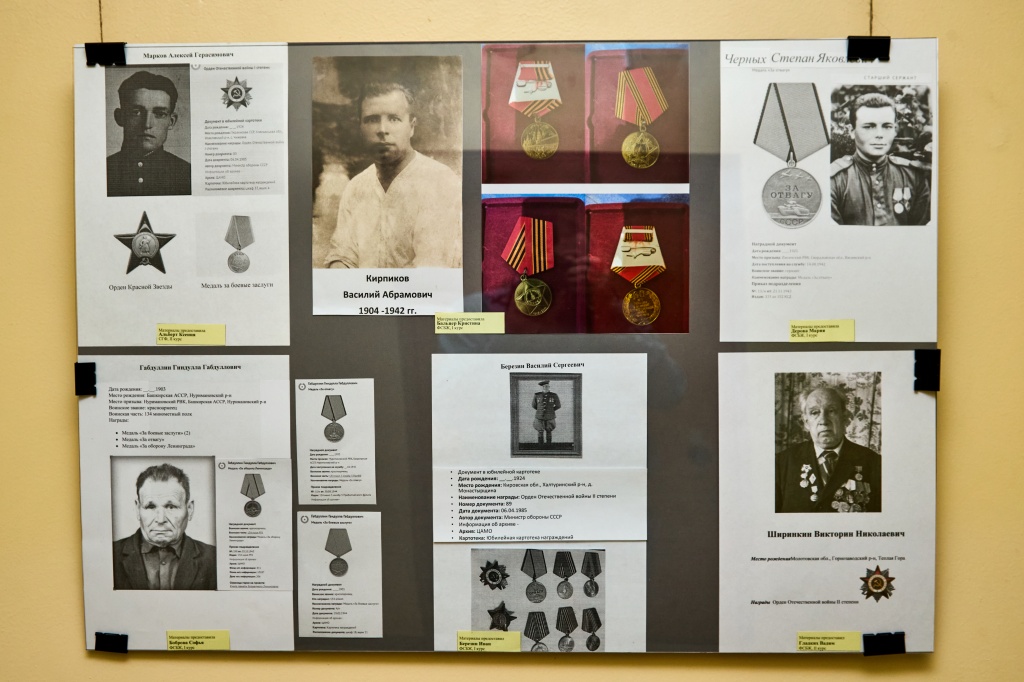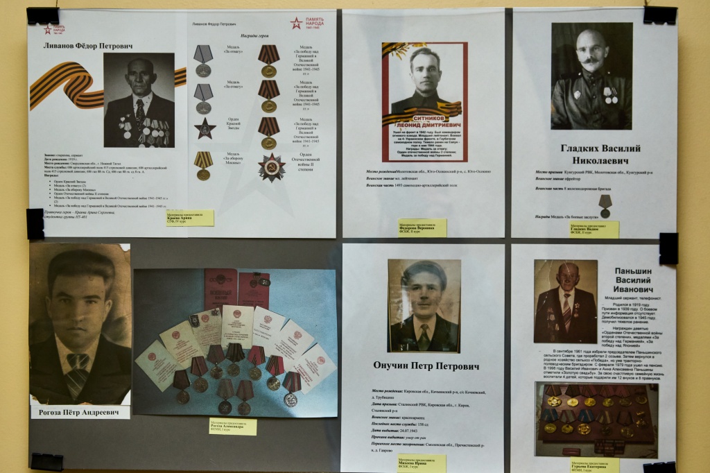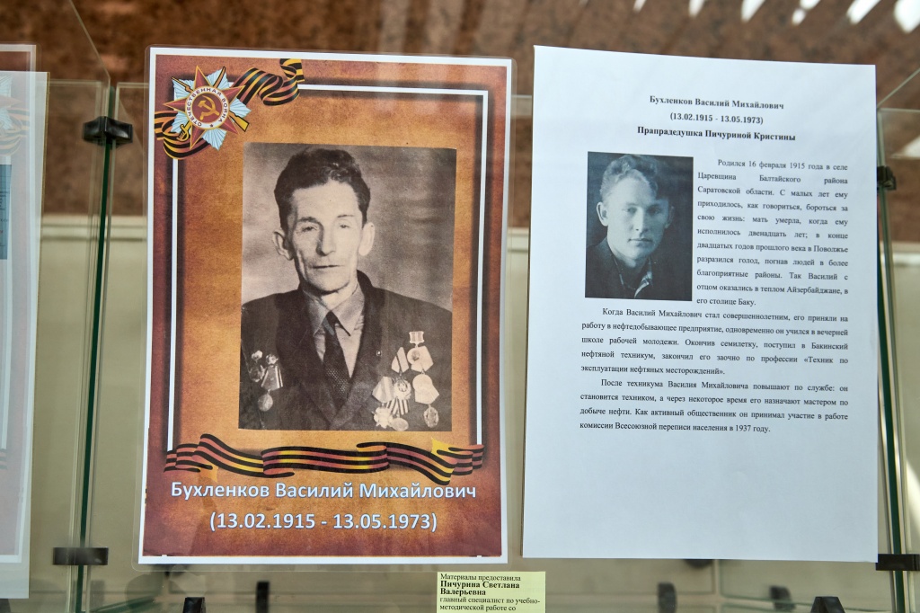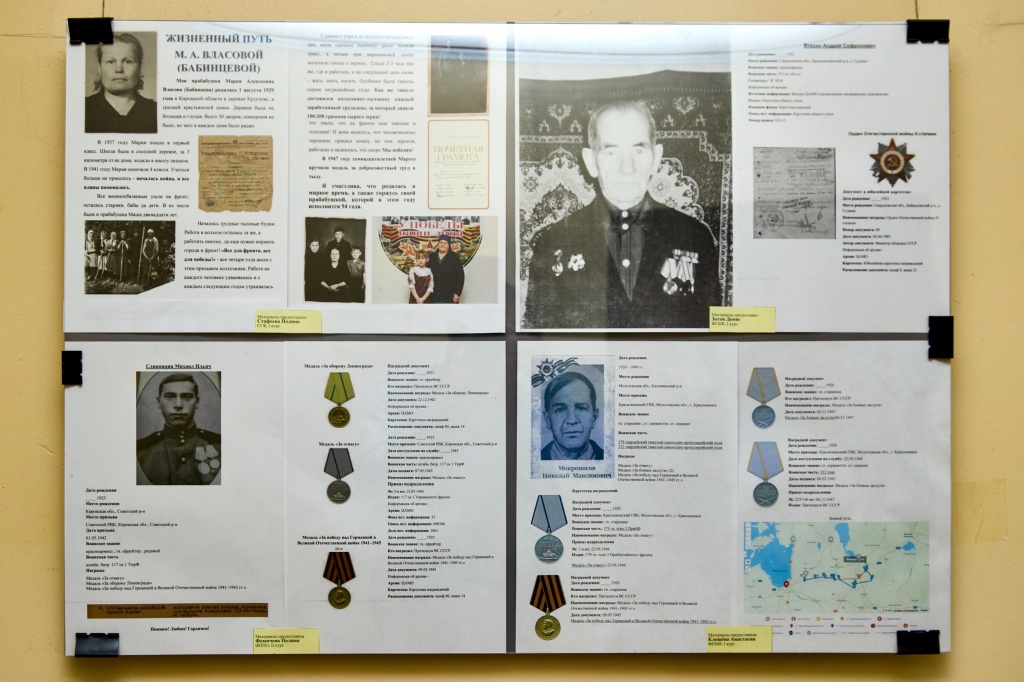 Галерея Героев, оформление которой началось с проекта «Герои моей семьи», пополнилась многими фамилиями. Студенты, работая с базами данных, находящимися в открытом доступе («Память народа», «Депозитарий Победы»), а также семейными архивами, предоставили информацию о своих фронтовиках – героях Великой Отечественной войны.