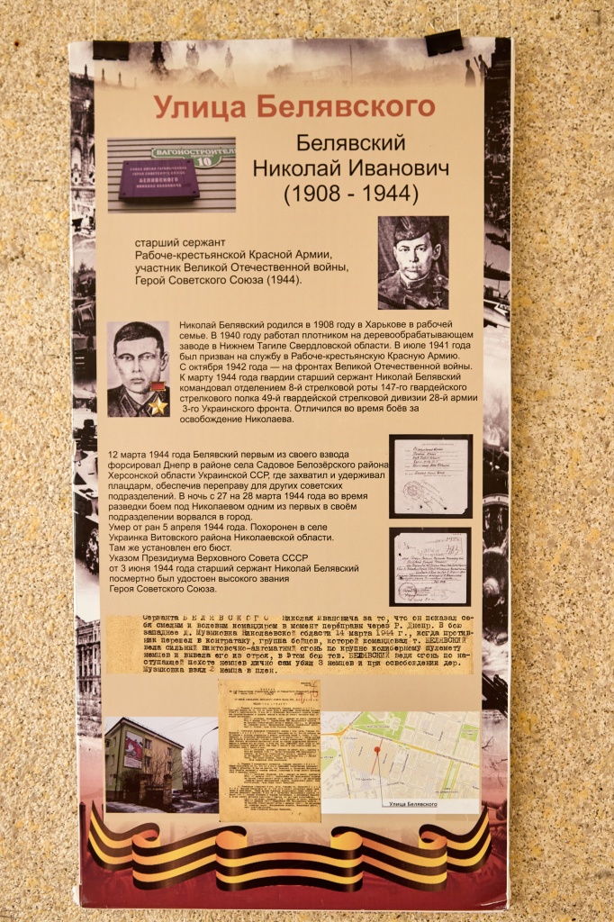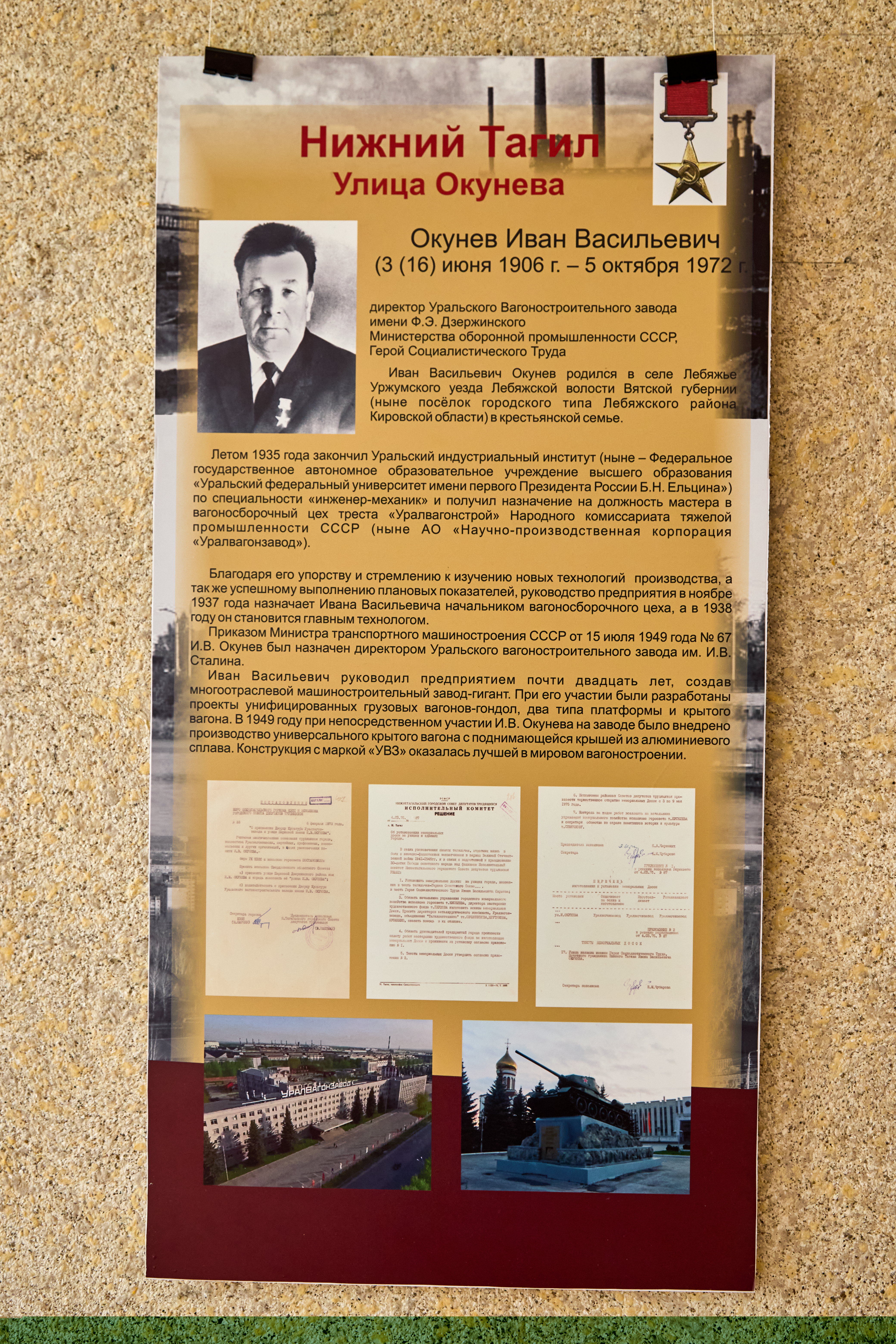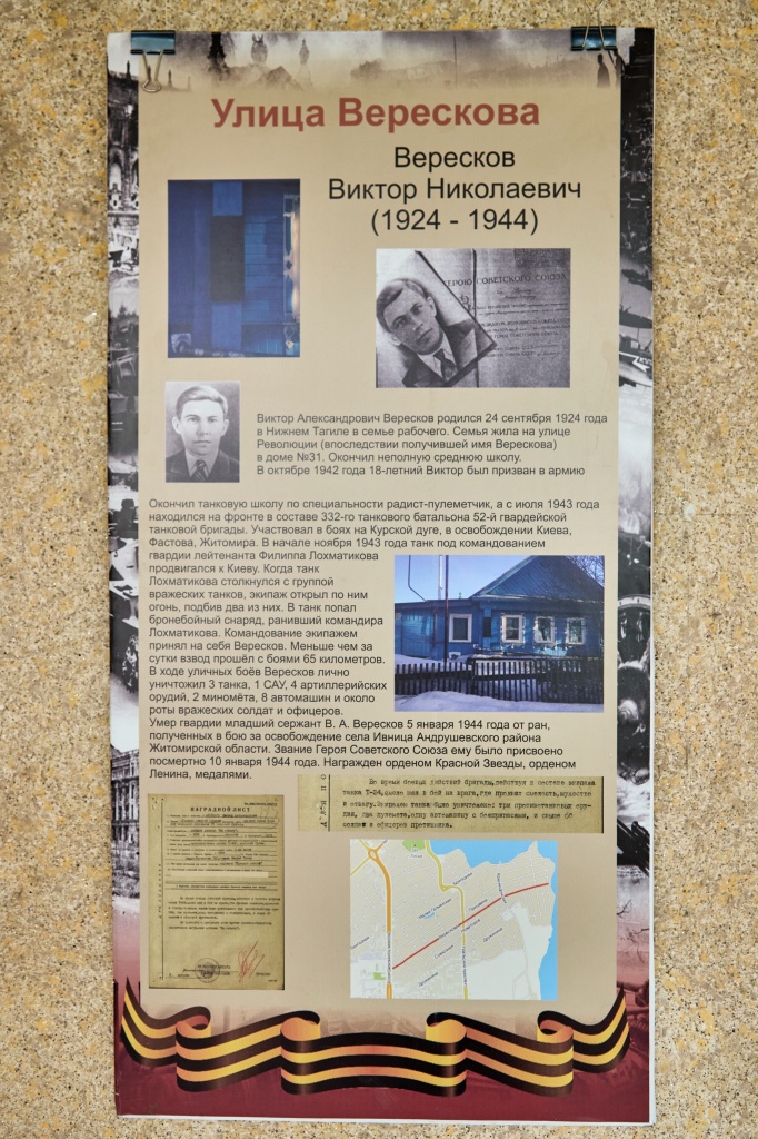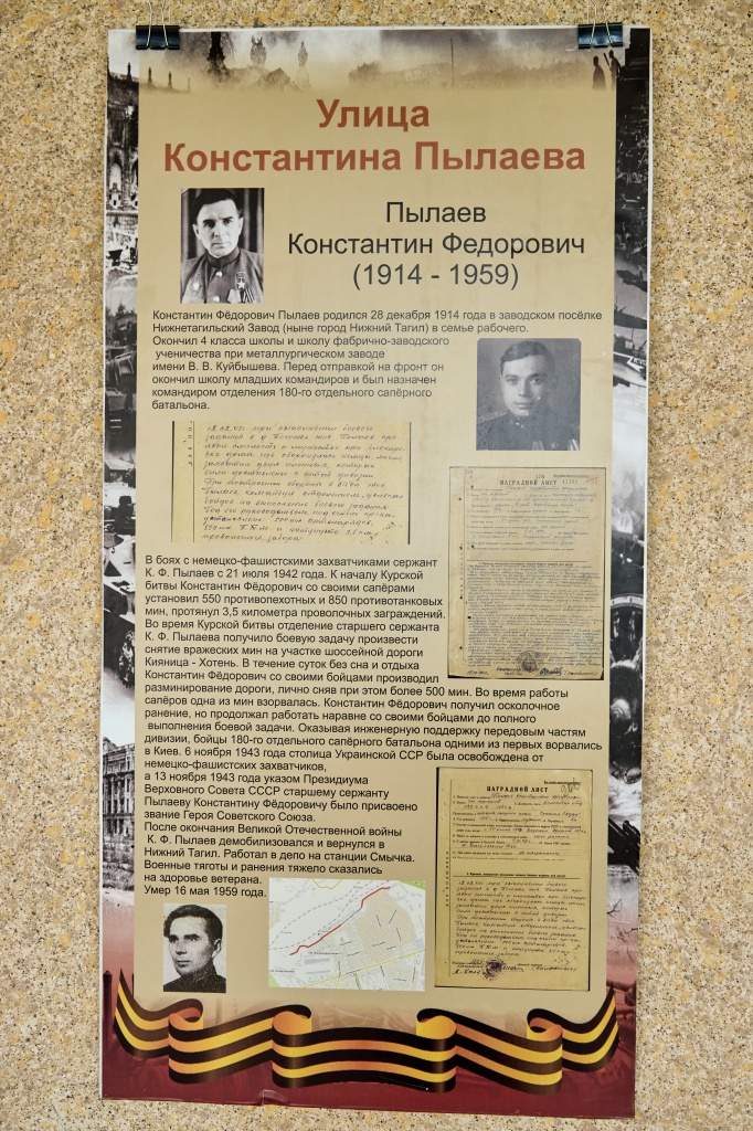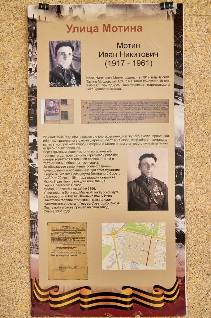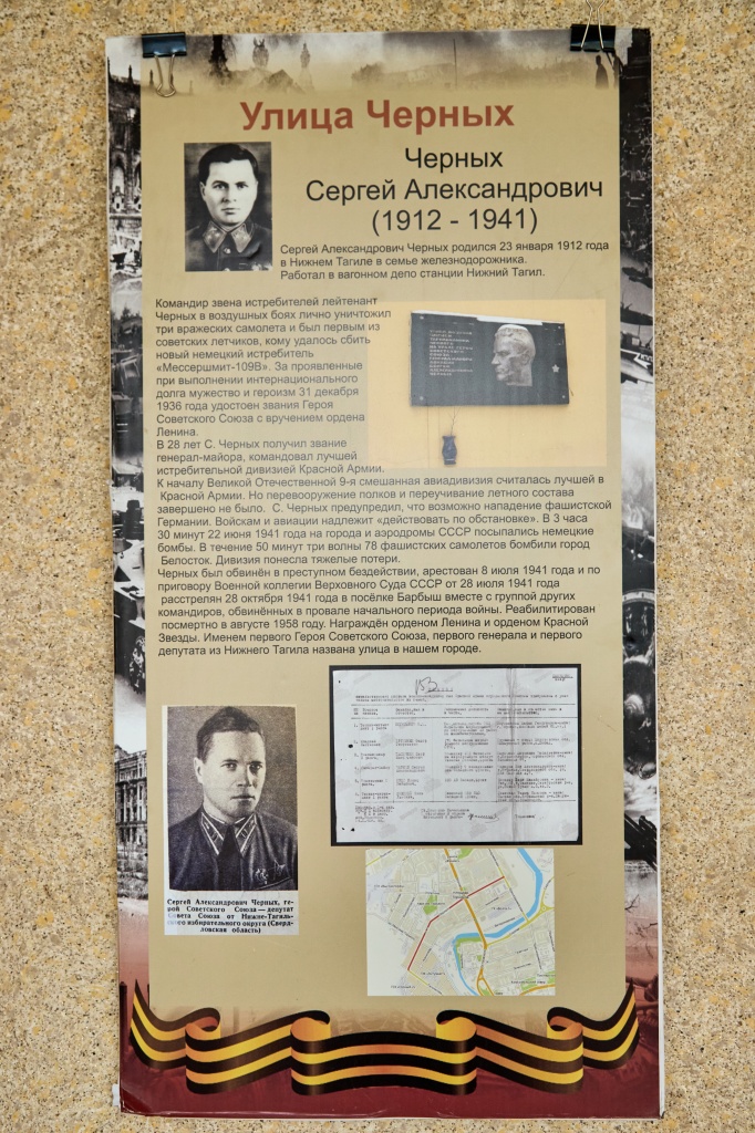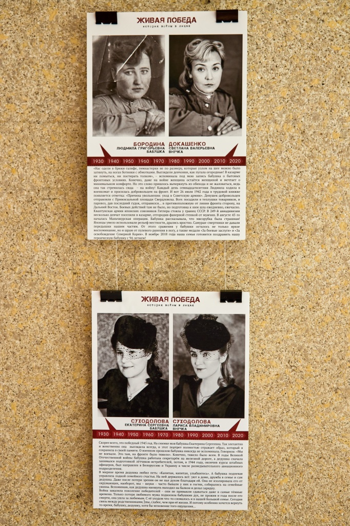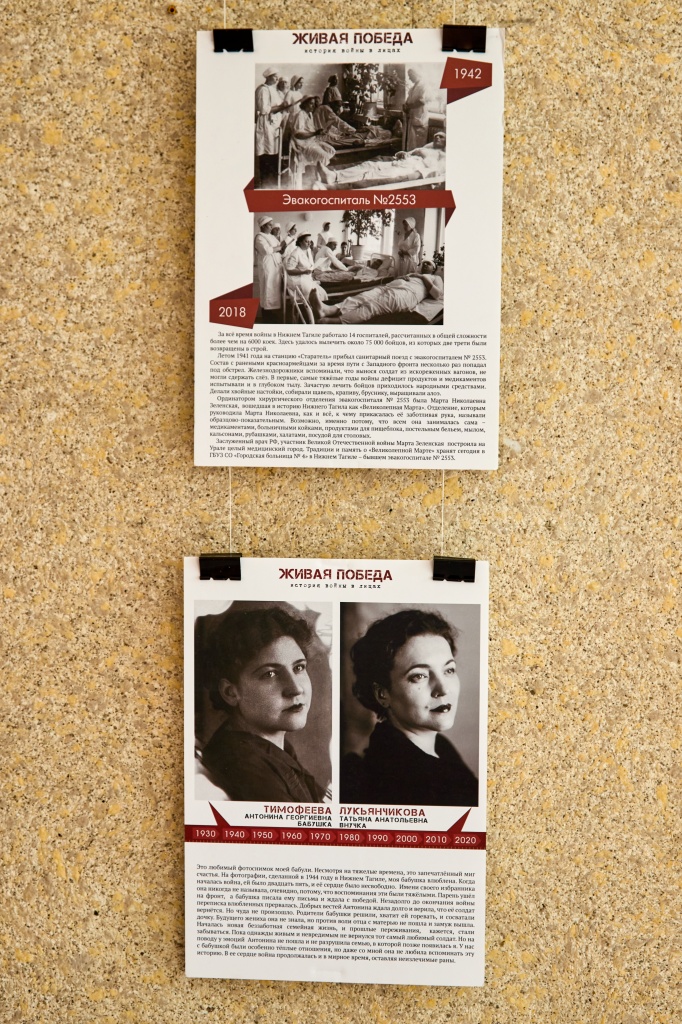 Первый комплекс из семи планшетов – это фрагмент выставки «Улицы героев» (2017), посвященной тагильчанам – Героям СССР за боевые и трудовые заслуги в годы Великой Отечественной войне, в честь которых названы улицы Нижнего Тагила. Второй комплекс – о выставке «Живая Победа» (2019), вдохновившей студентов ФЕМИ на создание подобных фотоисторий о своих родных.