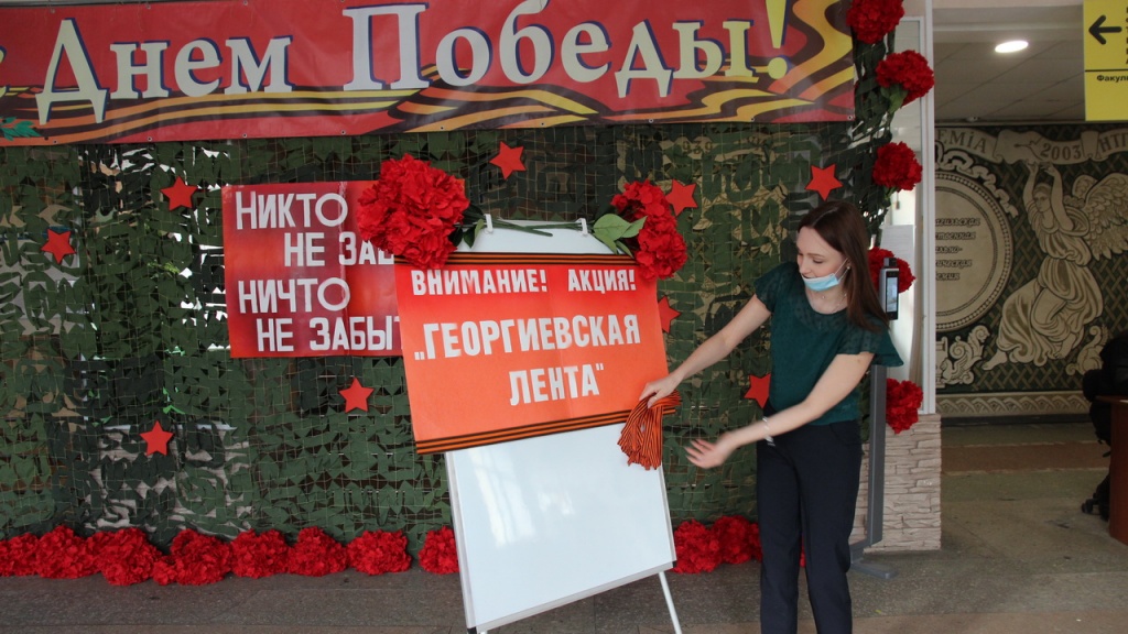 В преддверии знаменательного дня – Дня Победы – Управление воспитательной работы поздравило всех сотрудников, педагогов и студентов НТГСПИ с этим Великим Праздником и провело акцию «Георгиевская лента».