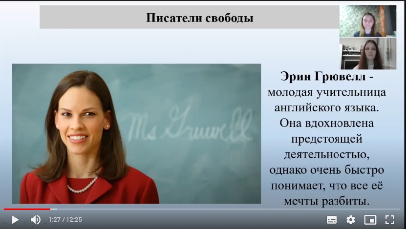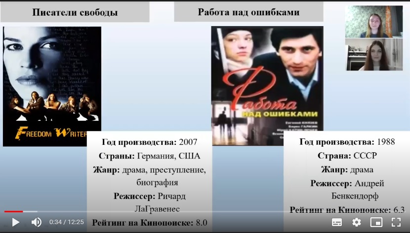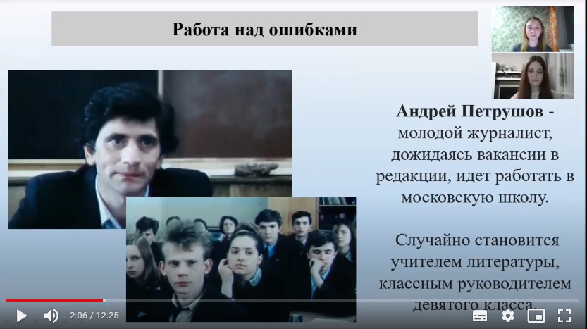 Студенты социально-гуманитарного факультета под руководством канд. ист. наук А. М. Олешковой продолжают анализировать педагогические ситуации на материалах мирового и отечественного кинематографа. В этот раз студентки 5 курса Олеся Ерматова и Алена Курамшина представят решение педагогических кейсов в фильмах «Работа над ошибками» (1988, СССР) и «Писатели свободы» (2007, Германия, США).