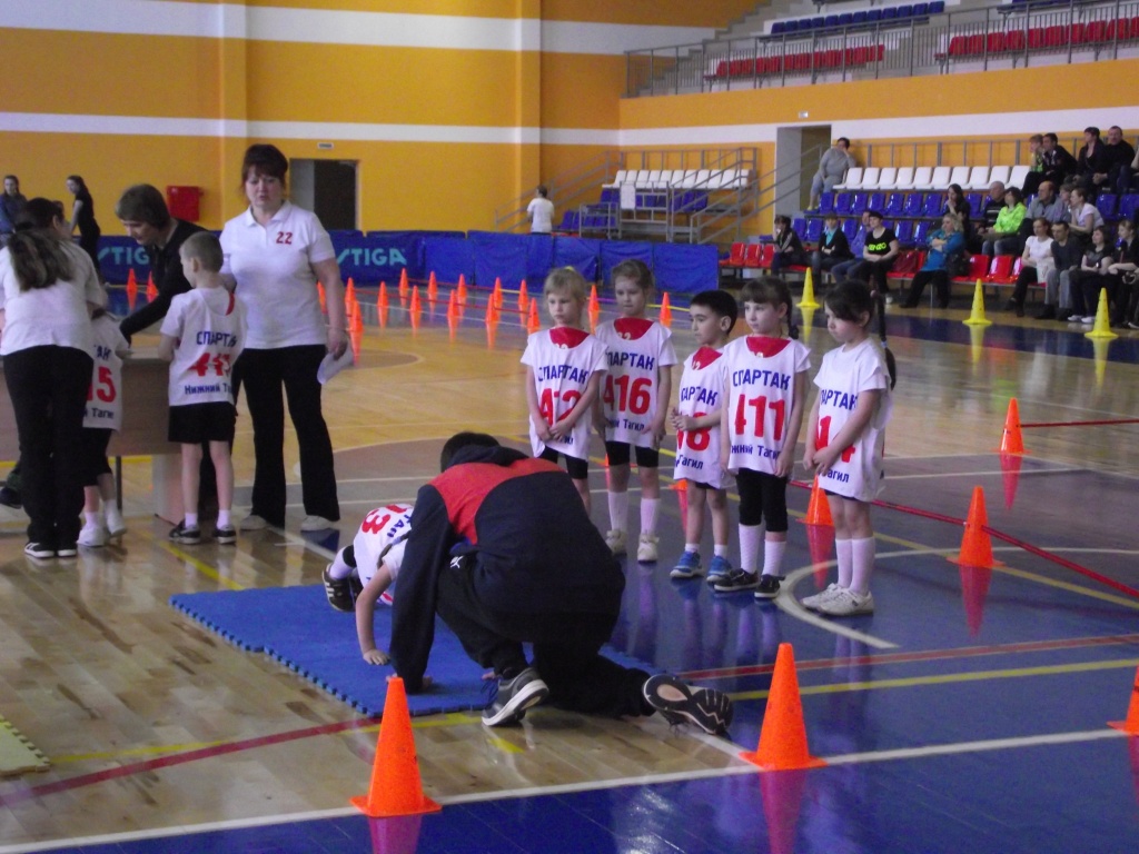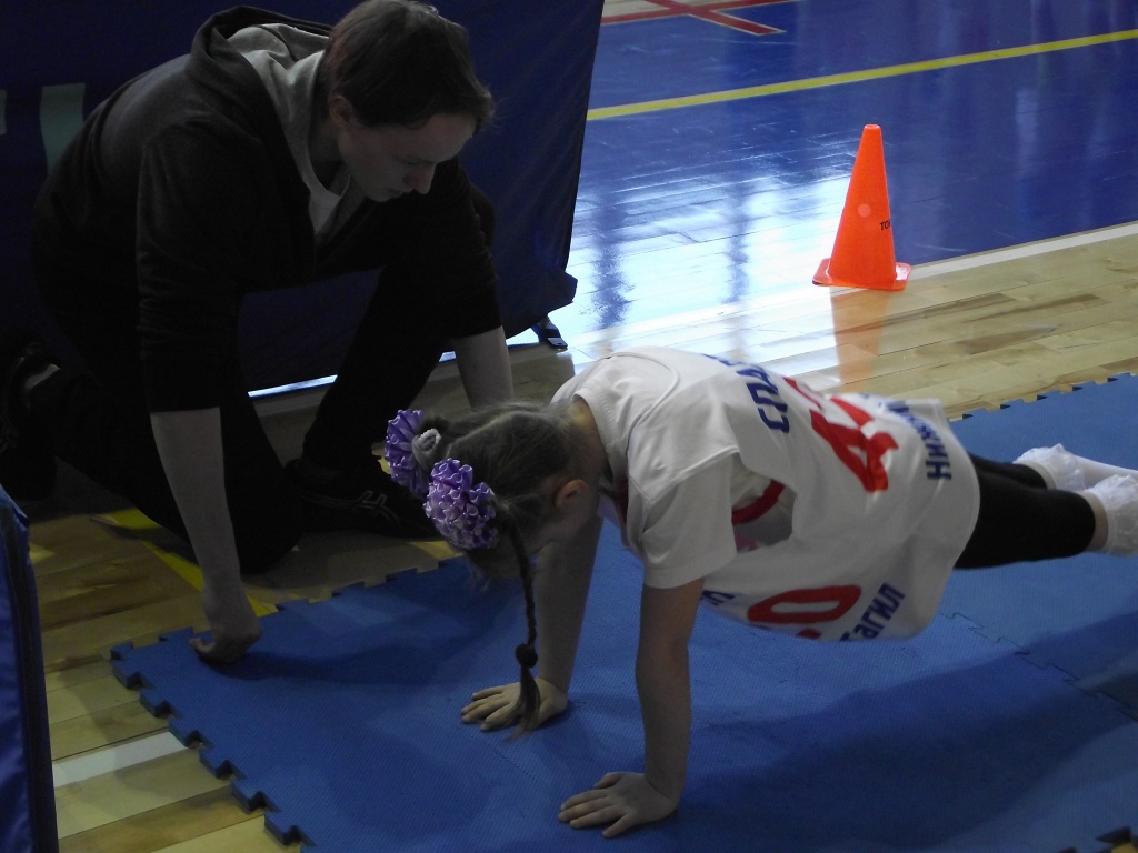Дошкольники 6–8лет соревновались по следующим видам программы: смешанный бег, челночный бег, прыжок в длину с места, тест на гибкость, сгибание и разгибание рук в упоре лёжа на полу, метание теннисного мяча в цель.