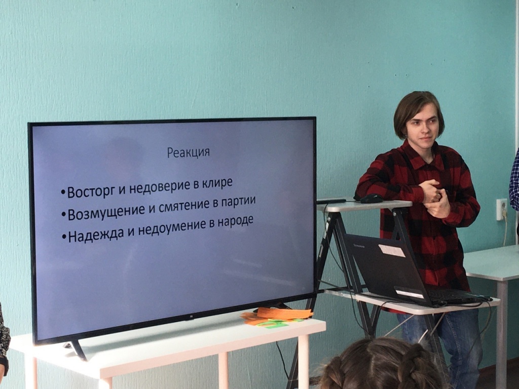В рамках занятия участники клуба смогли актуализировать знания не только в рамках истории и религиоведения, но и в области источниковедения и архивоведения. Работая с монографией, студенты отметили, что автор проанализировал большое количество архивных документов (ГАРФ, РГАСПИ), нормативно-правовых актов, воспоминаний, использовал материалы периодической печати и другие исторические источники.