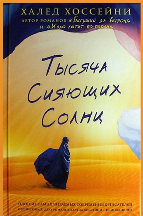 Второй роман «Тысяча сияющих солнц» – история двух афганских девушек, таких разных по характеру и социальному статусу, но таких одинаковых в своем горе и бесправии. Мариам – незаконнорожденная дочь богатого бизнесмена, насильно выданная замуж за 40-летнего кабульца. Лейла – счастливая девочка, выросшая в интеллигентной семье и мечтающая получить образование в университете, любимая дочь учителя, мечтающая выйти замуж за друга детства. Волею судьбы они обе становятся женами одного человека, который держит их в послушании и страхе. Избитые, отвергнутые в любви, они находят друг в друге то, что война, общество и талибан отняли у них: любовь вопреки всему и самоуважение.