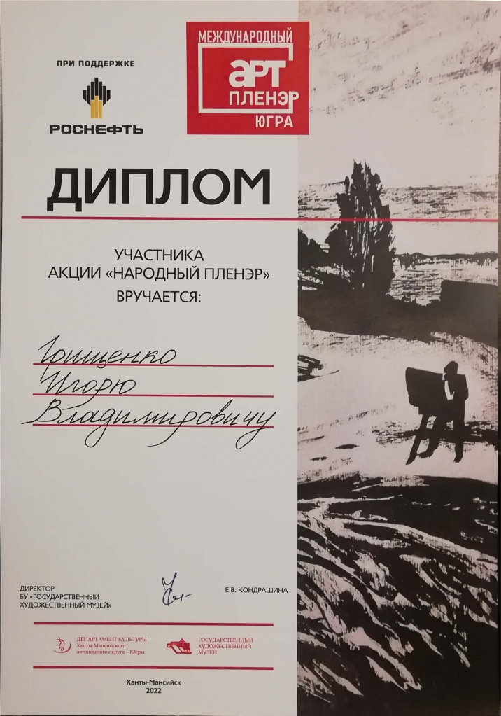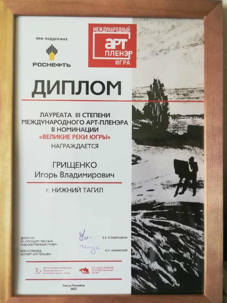 С 10 по 20 августа 2022 г. в г. Ханты-Мансийске проводился международный атр-пленэр. В группу художников из разных городов России и Казахстана в количестве 16 человек в результате предварительного конкурсного отбора были включены трое художников – выпускников нижнетагильского худграфа: Иван Михайлович Анцыгин – преподаватель УралГАХА, г. Екатеринбург; Игорь Владимирович Грищенко – преподаватель ФХО НТГСПИ (ф) РГППУ и Валерий Юрьевич Хасанов – преподаватель ДХШ № 1 г. Н. Тагила.