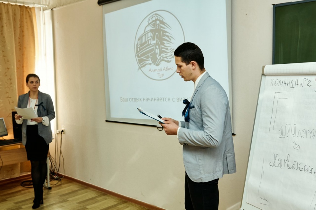 Первым заданием была разработка нового уникального туристического маршрута и его продвижение. На этом этапе участникам нужно было не только создать коммерческий продукт, но и составить план его продвижения на рынке туристических услуг и рассчитать затраты. Конкурсанты разрабатывали автотур с элементами квеста на группу из 12 человек на территории Хакасии. Каждая команда отличилась оригинальной эмблемой и слоганом. Например, слоган участников команды № 5 (Вячеслав Соловьев и Екатерина Шеронова): «В движении – истина!»
