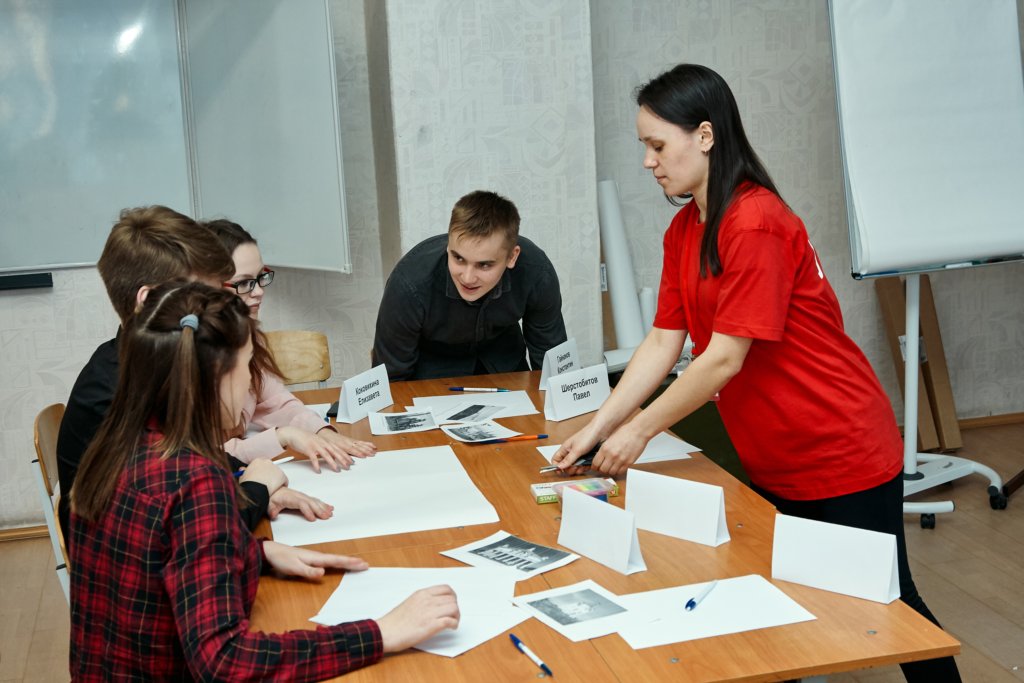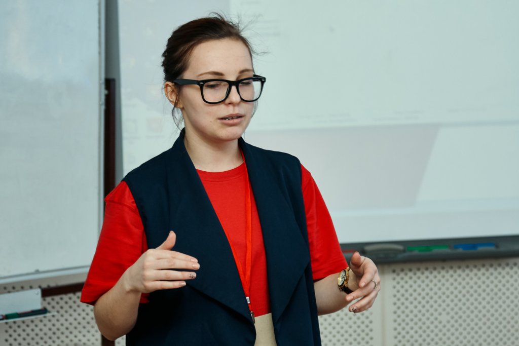 Получив глоток хорошего настроения, с новыми силами дети встретили Ксению Белынцеву, которая рассказала о том, кто такие пресс-волонтеры и зачем они нужны. Позитивная и энергичная Ксения поставила перед собой цель – создать школьный медиацентр. Что ей для этого понадобилось? Желание и активность учеников. Ребята поделились на три группы: журналисты, задача которых состояла в создании списка грядущих мероприятий; группа SMM, в обязанности которых вошли создание и развитие страницы в социальной сети; группа дизайнеров, отвечающих за разработку логотипа будущего медиацентра. Ксения рационально организовала работу и смогла уложиться в регламент. Участница поделилась своим мнением о сегодняшнем этапе: «Сложно в том плане, что следят эксперты, мастера своего дела, зрители. Боишься сделать что-то не так. Волновалась очень сильно, но все поддерживали, поэтому все хорошо».