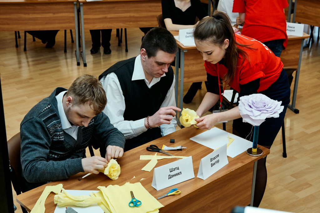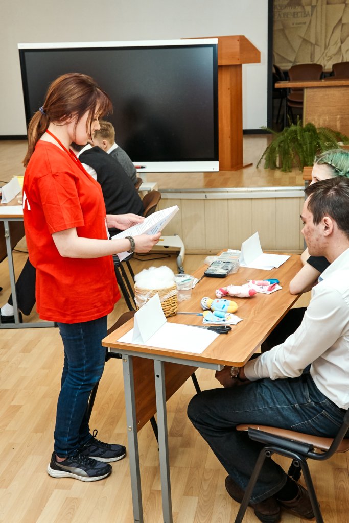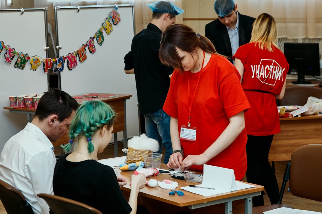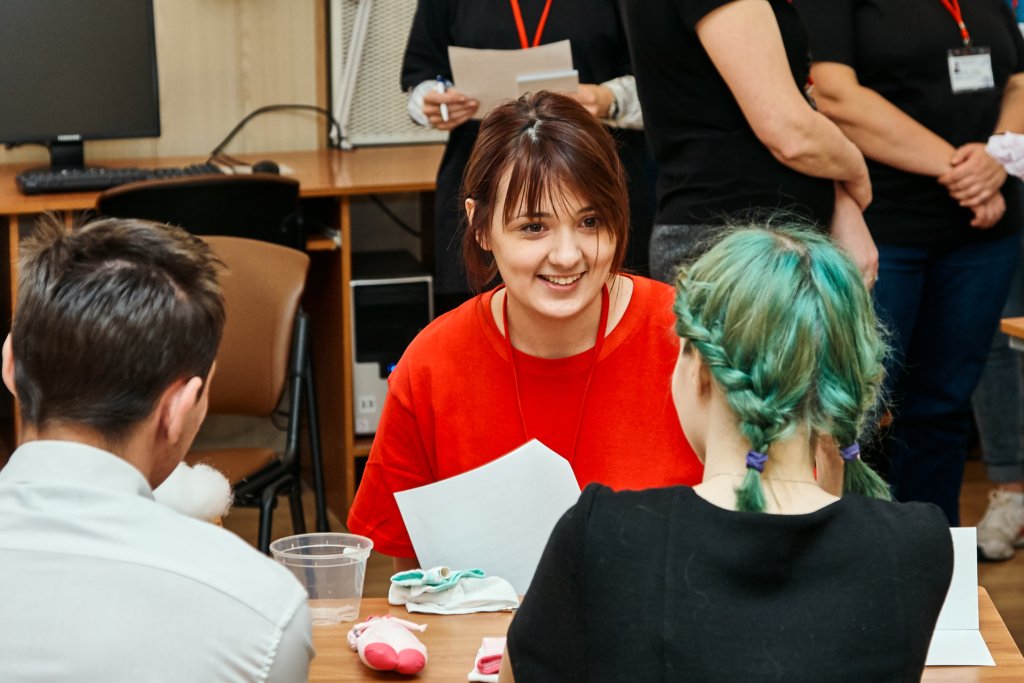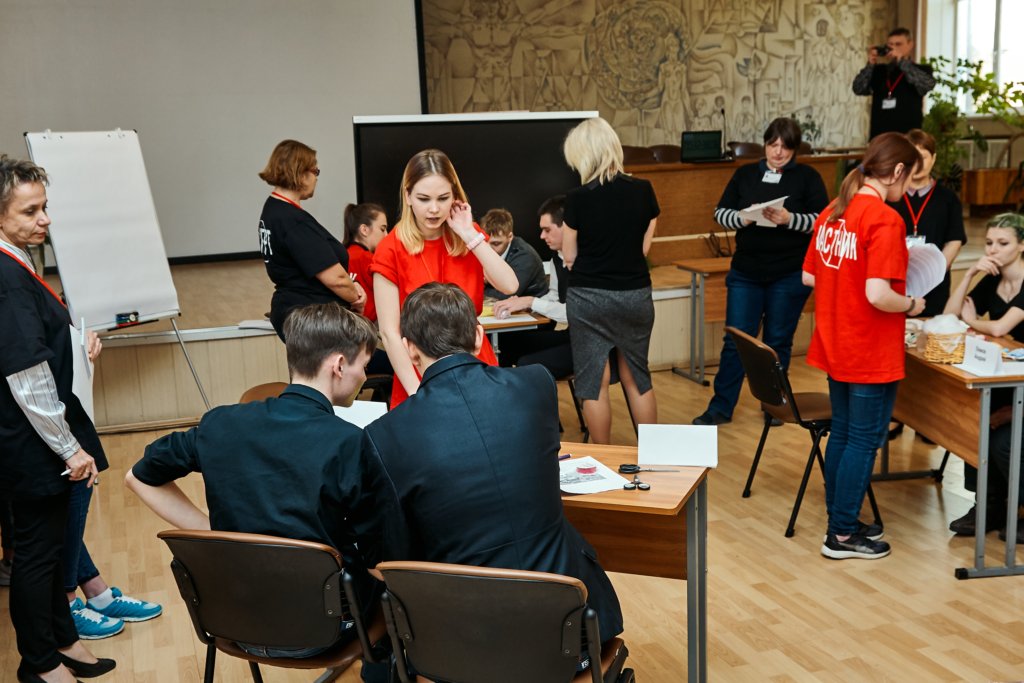 После небольшого перерыва участники показали свои практические умения при организации мастер-класса для малых групп школьников. Конкурсанты и волонтеры в роли школьников создавали оригинальные вещи, например, 3D-модель шара, куклы, фигурки из бумаги, пригласительные на праздник, оформляли стол-фуршет на торжественное мероприятие. С первым этапом все справились!