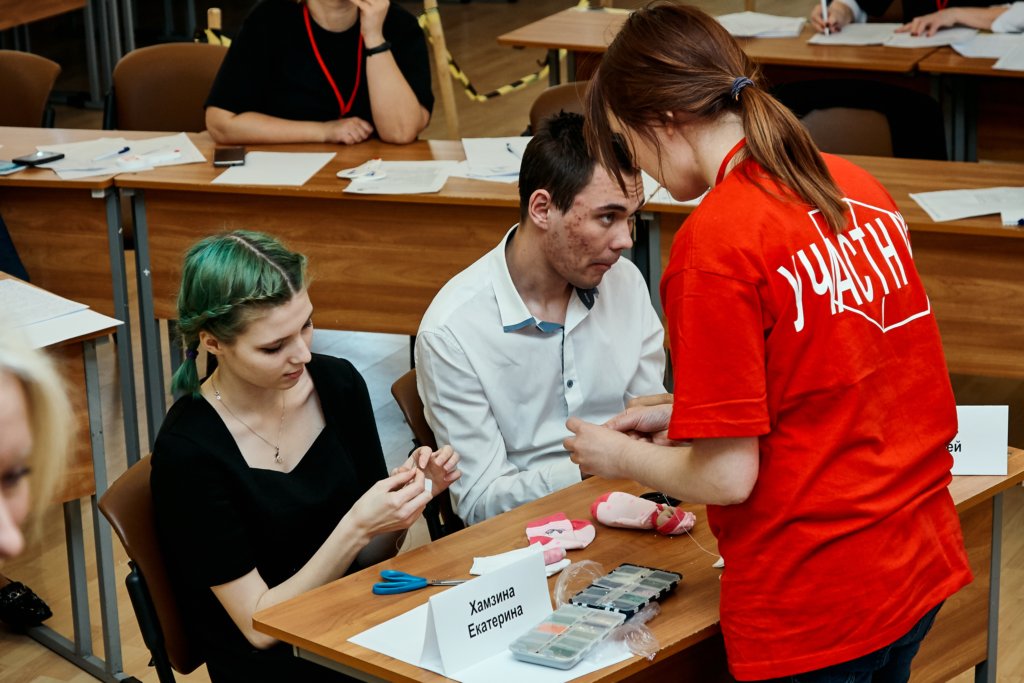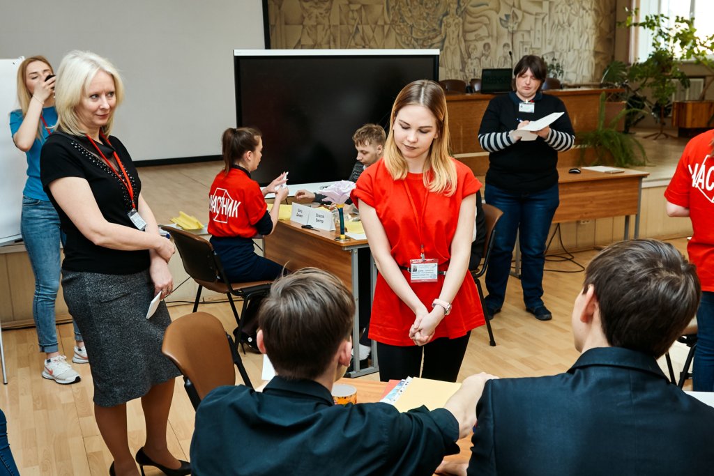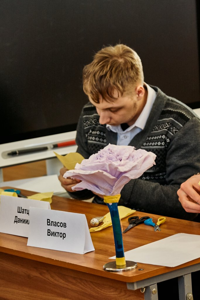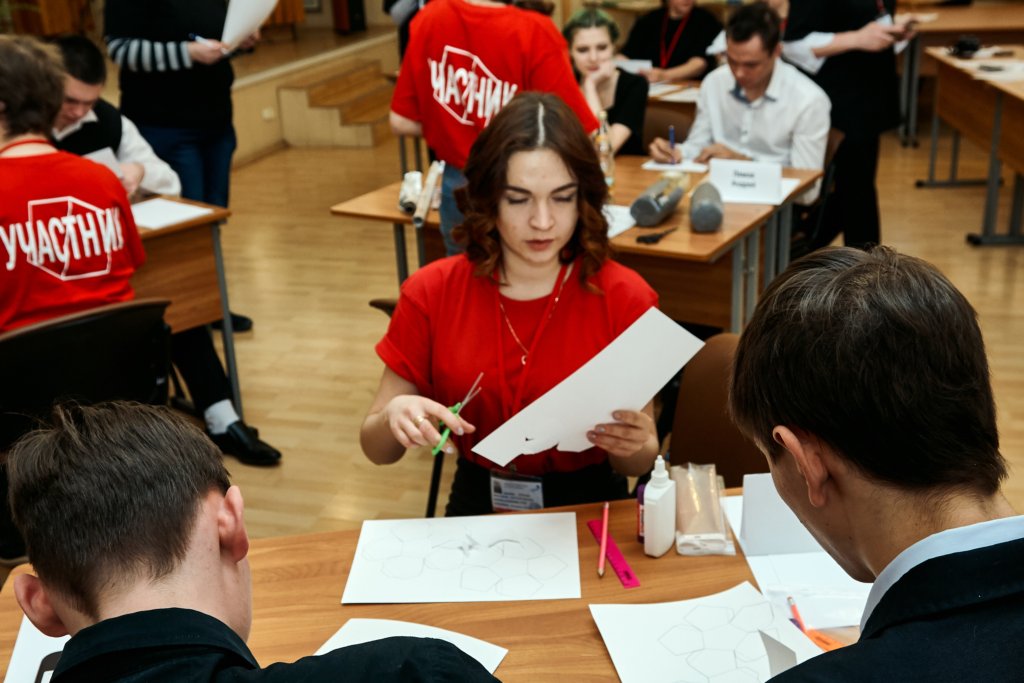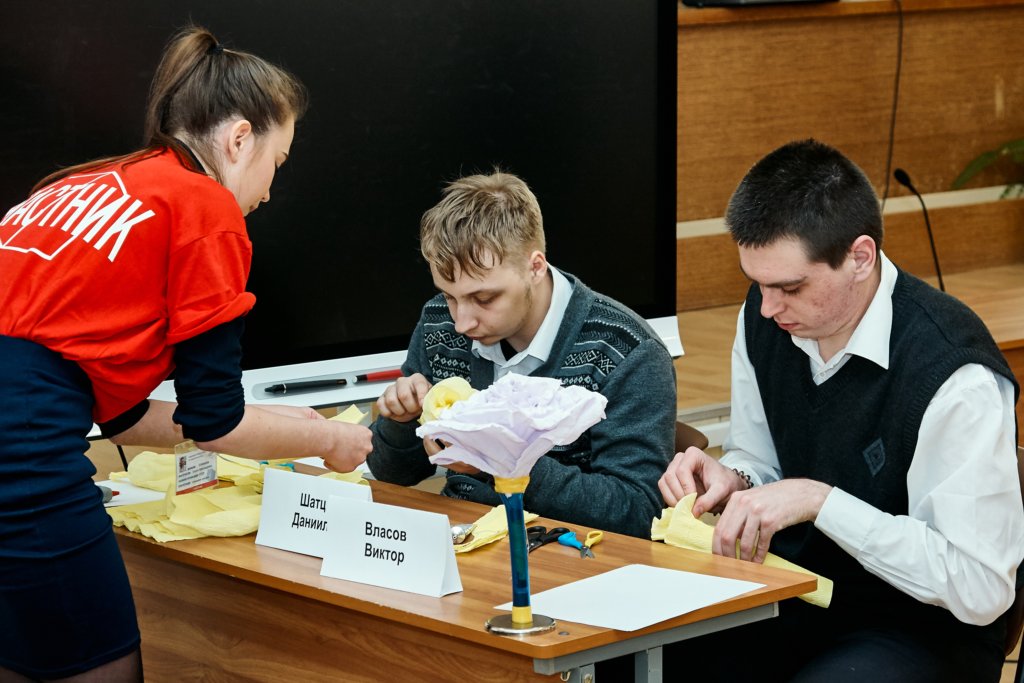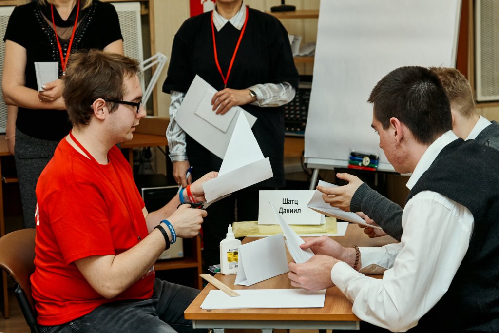 После небольшого перерыва участники показали свои практические умения при организации мастер-класса для малых групп школьников. Конкурсанты и волонтеры в роли школьников создавали оригинальные вещи, например, 3D-модель шара, куклы, фигурки из бумаги, пригласительные на праздник, оформляли стол-фуршет на торжественное мероприятие. С первым этапом все справились!