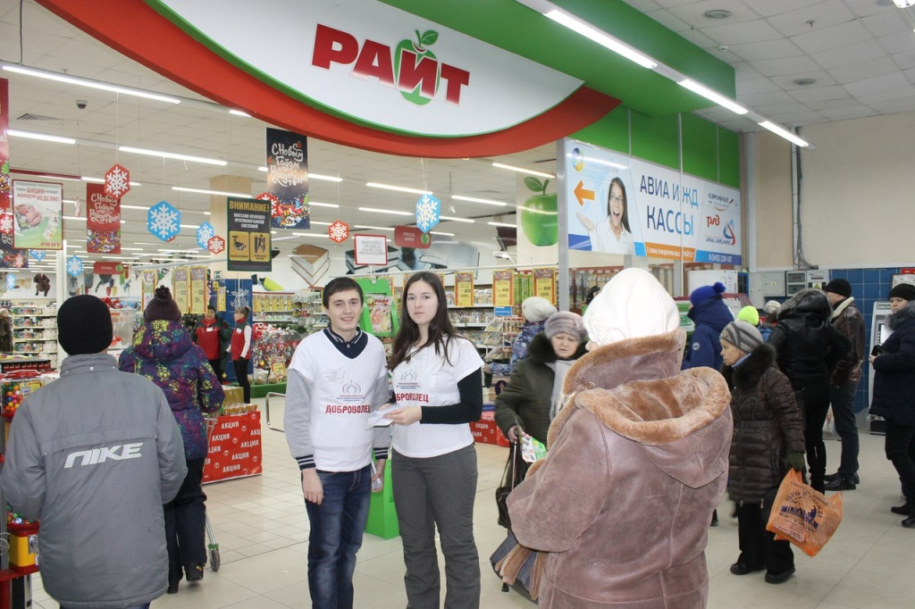 Каждый приглашался к участию в добром деле. Покупая товары для себя, можно было оставить часть в специальных корзинах для нуждающихся. Благодаря собранным пожертвованиям уже готовы подарки для 43 семей – подопечных социально-реабилитационного центра для несовершеннолетних «Радуга».