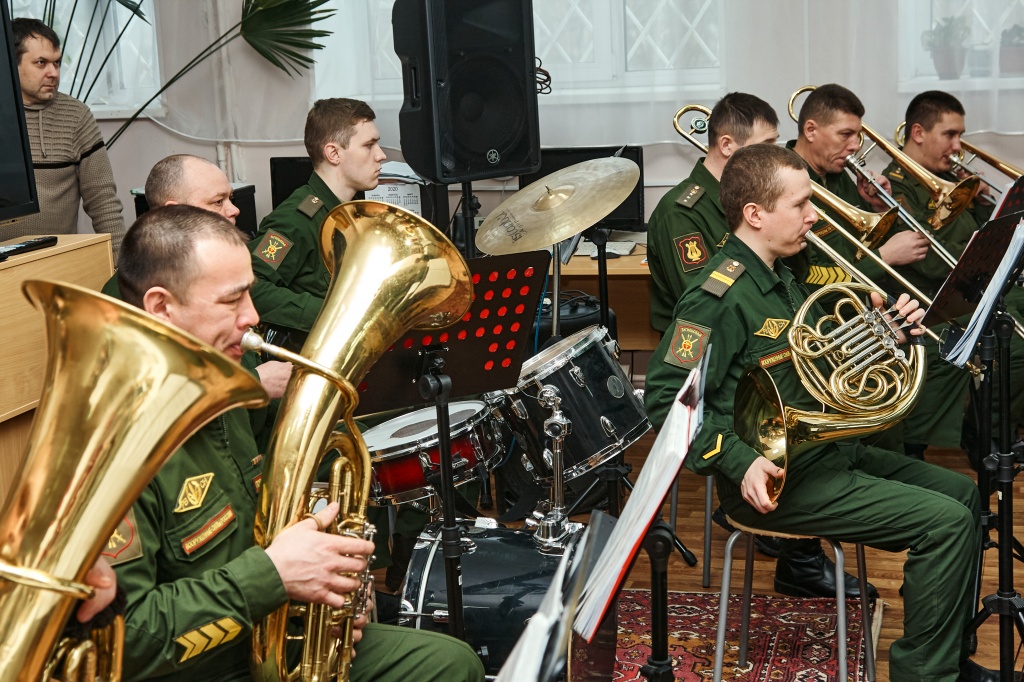 В дружеской обстановке при полном зале ветеранов Духовой оркестр Тагильской ракетной дивизии исполнил композиции военных лет, посвященные Году памяти и славы, а также прошедшему Дню защитника Отечества.