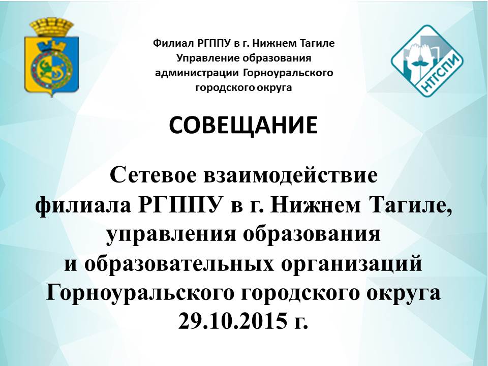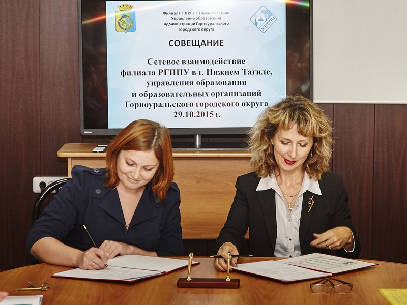 С начала 2015 года по инициативе директора НТГСПИ (филиала РГППУ в Нижнем Тагиле) Л. Е. Егоровой и бывшего начальника управления образования администрации округа А.В. Лунева началась работа над Договором о научно-методическом сотрудничестве между институтом и управлением образования.