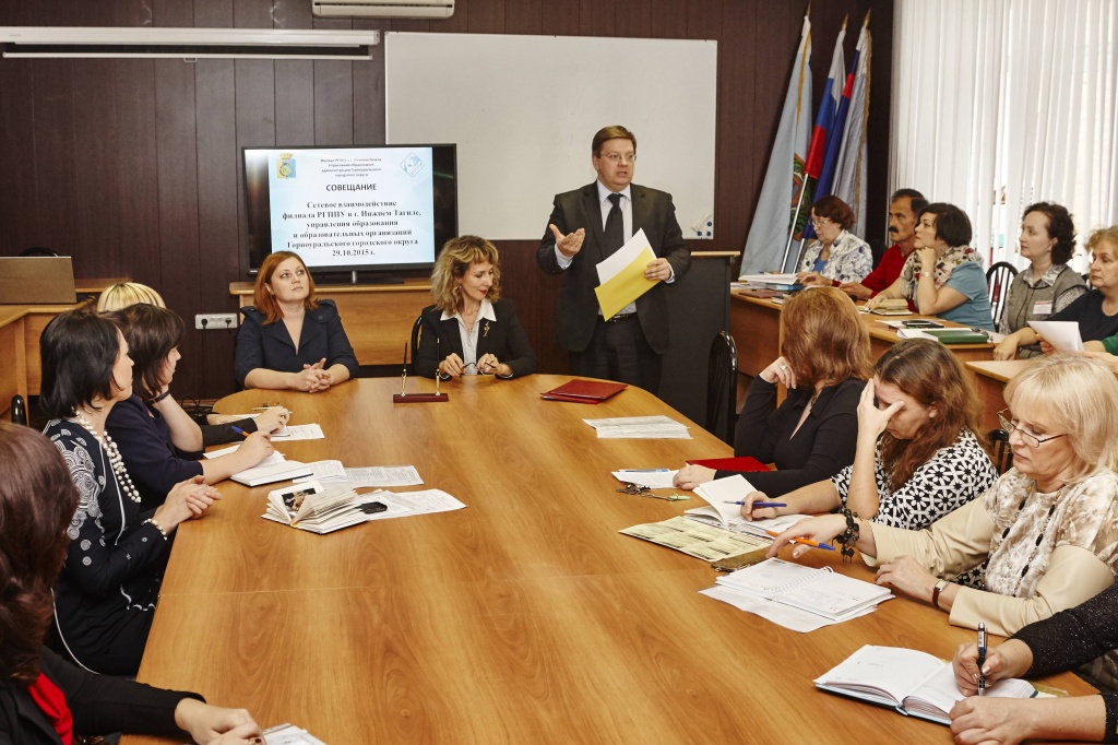 29 октября в конференц-зале филиала РГППУ в г. Нижнем Тагиле состоялась встреча руководства института, руководителей факультетов и кафедр, научных консультантов с руководителями управления образования, образовательных организаций, на базе которых были созданы МРЦ. Директором филиала РГППУ в г. Нижнем Тагиле Л. Е. Егоровой и начальником управления образования администрации Горноуральского городского округа Н. А. Сащенко был подписан Договор о сетевом взаимодействии управления образования администрации округа и подведомственных управлению образовательных организаций с филиалом РГППУ в г. Нижнем Тагиле. Цель сотрудничества – повышение качества научно-методической деятельности, создание условий для профориентационной работы обучающихся, организация площадок учебных и производственных практик студентов в 2015–2016 учебном году. Кроме того, состоялись индивидуальные консультации научных руководителей и педагогов образовательных организаций округа, руководителей МРЦ. В работе совещания приняли участие более 70 человек. Достигнута договоренность о проведении подобных мероприятий на регулярной основе.