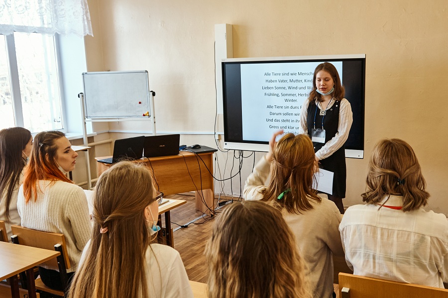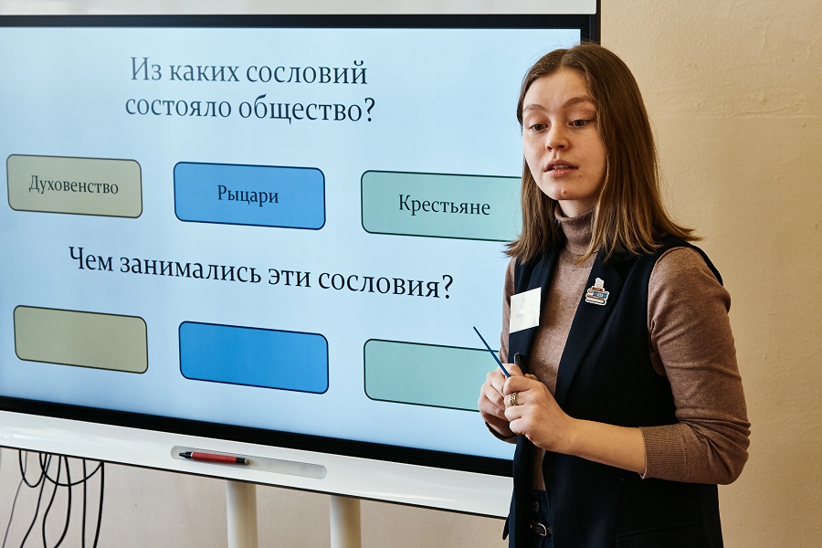 В конкурсных соревнованиях приняли участие студенты 3-го курса разных факультетов нашего института. В ходе конкурса участникам необходимо было провести с волонтерами фрагмент урока с применением современных образовательных и информационно-коммуникационных технологий, фрагмент внеурочного занятия по проектной / исследовательской деятельности учащихся c использованием интерактивных технологий и решить ситуационную педагогическую задачу.