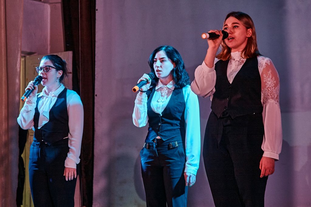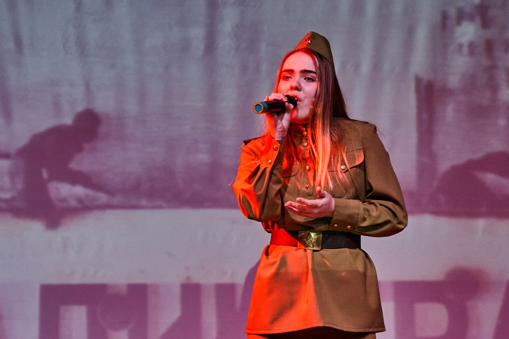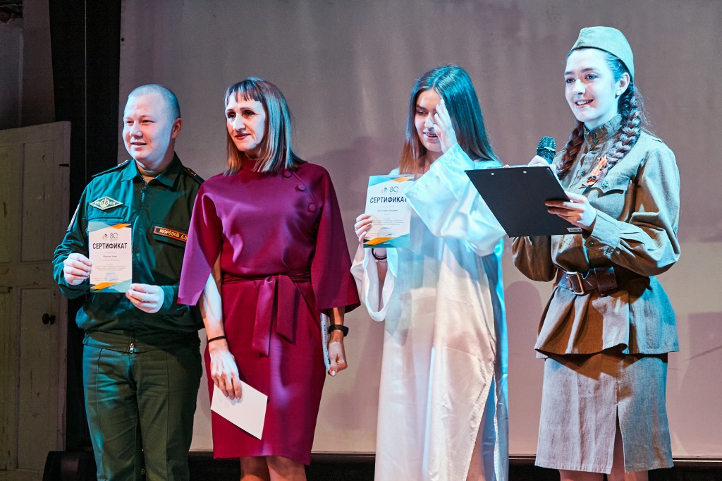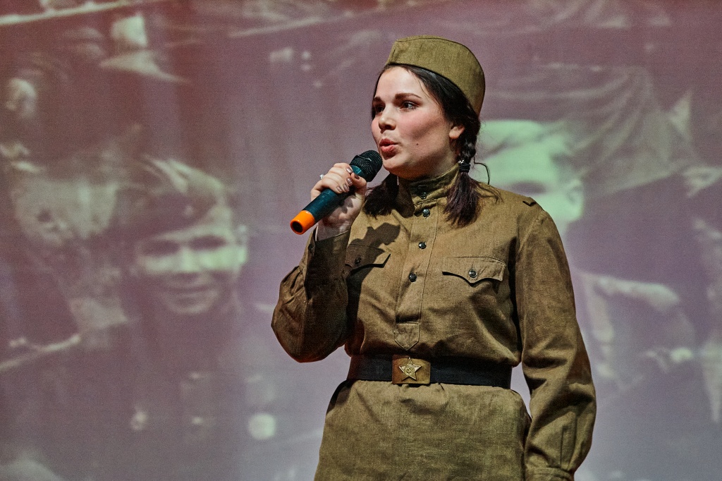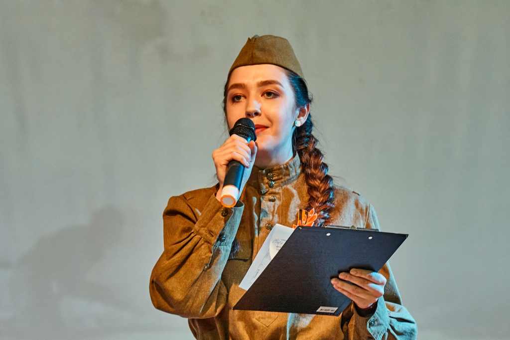 Музыкальный подарок от вокального ансамбля ФППО под руководством Трофимовой Елены Давидовны положил начало исполнению подготовленных участниками номеров. Конкурсанты один за другим выходили на сцену для прочтения проникновенных поэтических текстов и выступления с музыкальными композициями. Произведения рассказывали зрителям о нелегкой участи солдат, их жен и дочерей; звучала живая музыка, были показаны портреты героев войны и фотографии, сделанные в далеких сороковых годах.