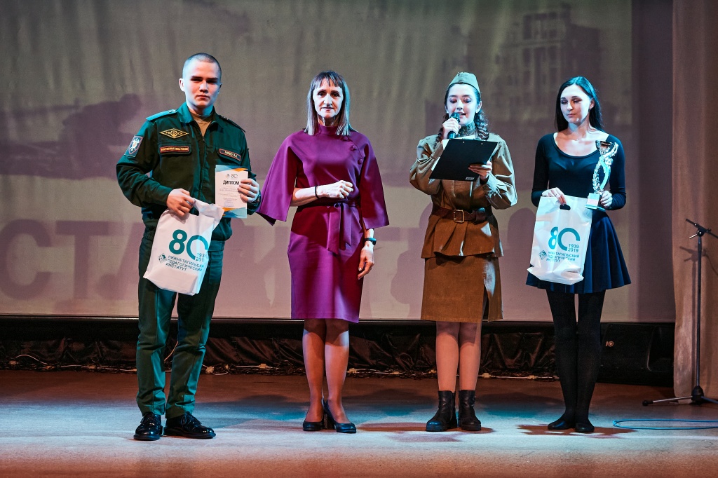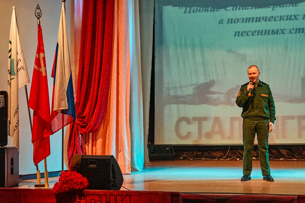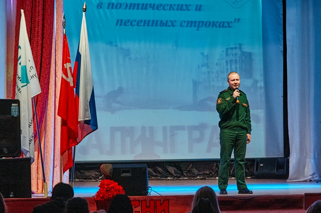 20 февраля в нашем институте состоялся открытый творческий конкурс «Подвиг Сталинграда в поэтических и песенных строках». Мероприятие было посвящено 75-й годовщине Победы в Великой Отечественной войне и организовано Управлением воспитательной работы НТГСПИ. В конкурсе приняли участие обучающиеся общеобразовательных организаций, а также организаций среднего профильного и высшего образования Нижнего Тагила. Участники исполнили патриотические произведения в двух номинациях: «Художественное слово» и «Вокал».
